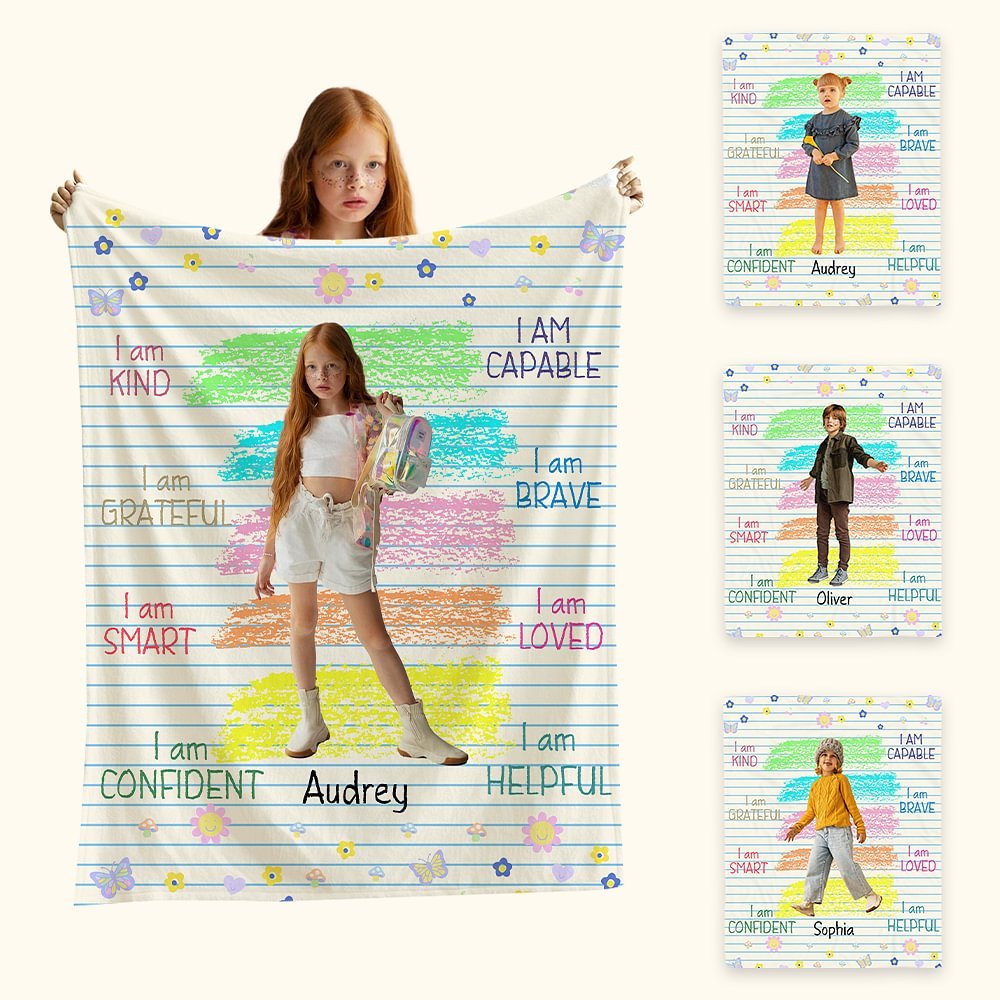 Aufgedruckt mit ermutigenden Sprüchen wie "Ich bin freundlich, ich bin fähig, ich bin mutig, ich bin dankbar, ich bin klug, ich bin zuversichtlich, ich bin hilfreich. Ich werde geliebt", dient diese Decke als ständige Quelle positiver Erinnerungen, die die Selbstbestätigung der Kinder fördert und ihr Selbstvertrauen stärkt.