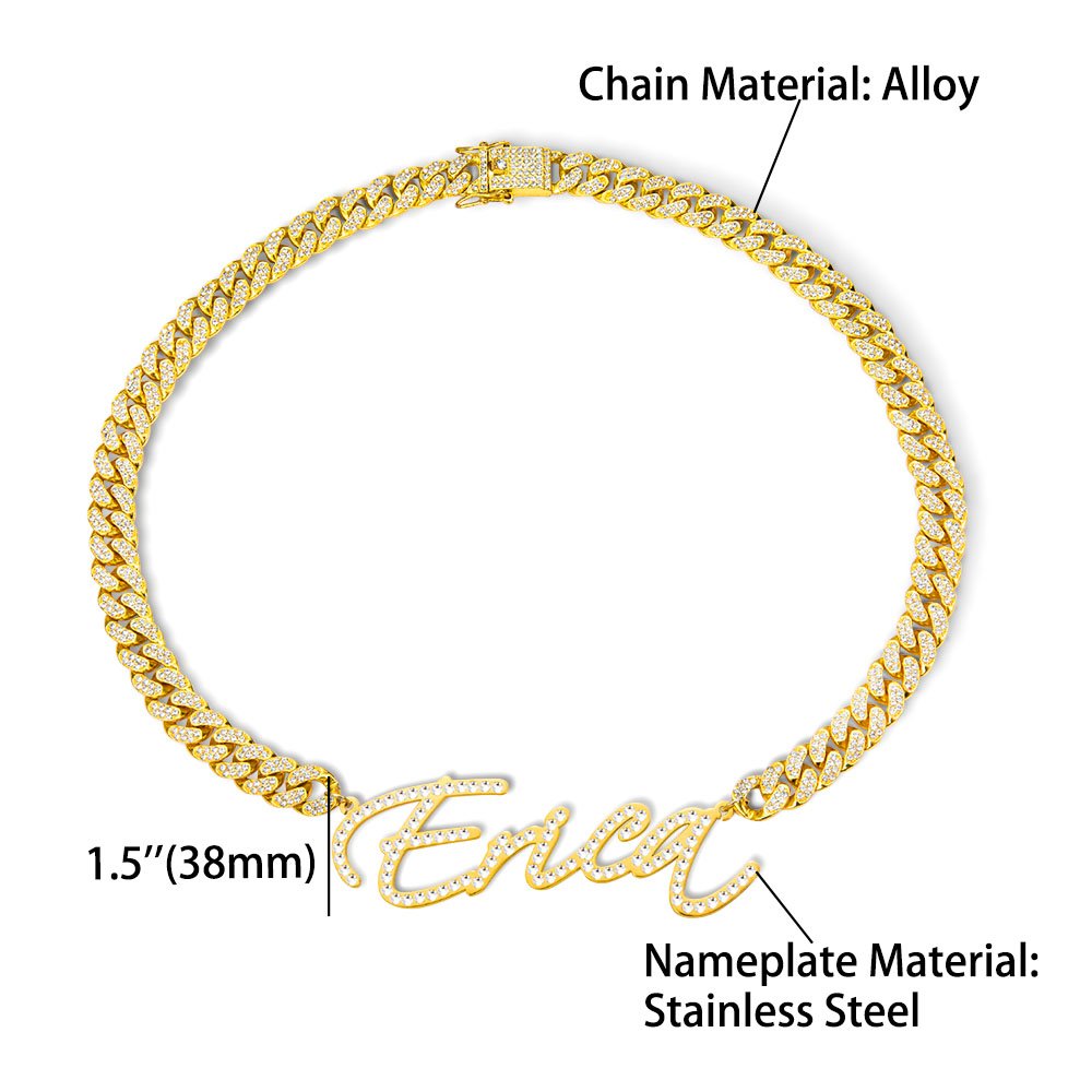 Halskettenfarbe: Gelbgold, Silber Material des Namensschilds: Edelstahl Höhe des Namensschilds: 38mm. Kettenmaterial: Legierung Kettentyp: Bordstein Kettengewicht: 104g Kettenlänge: 40cm (16")/45cm (18")/50cm (20")