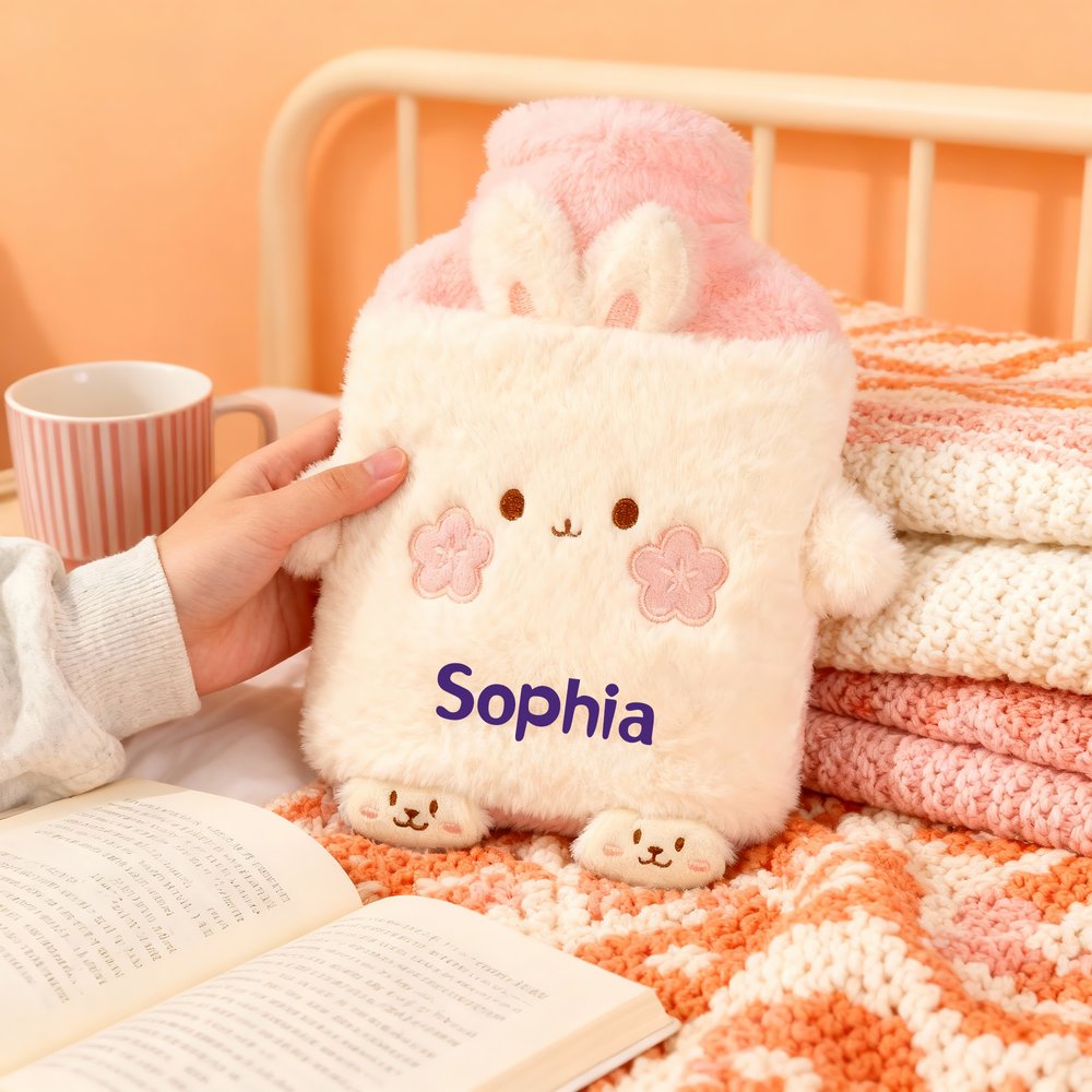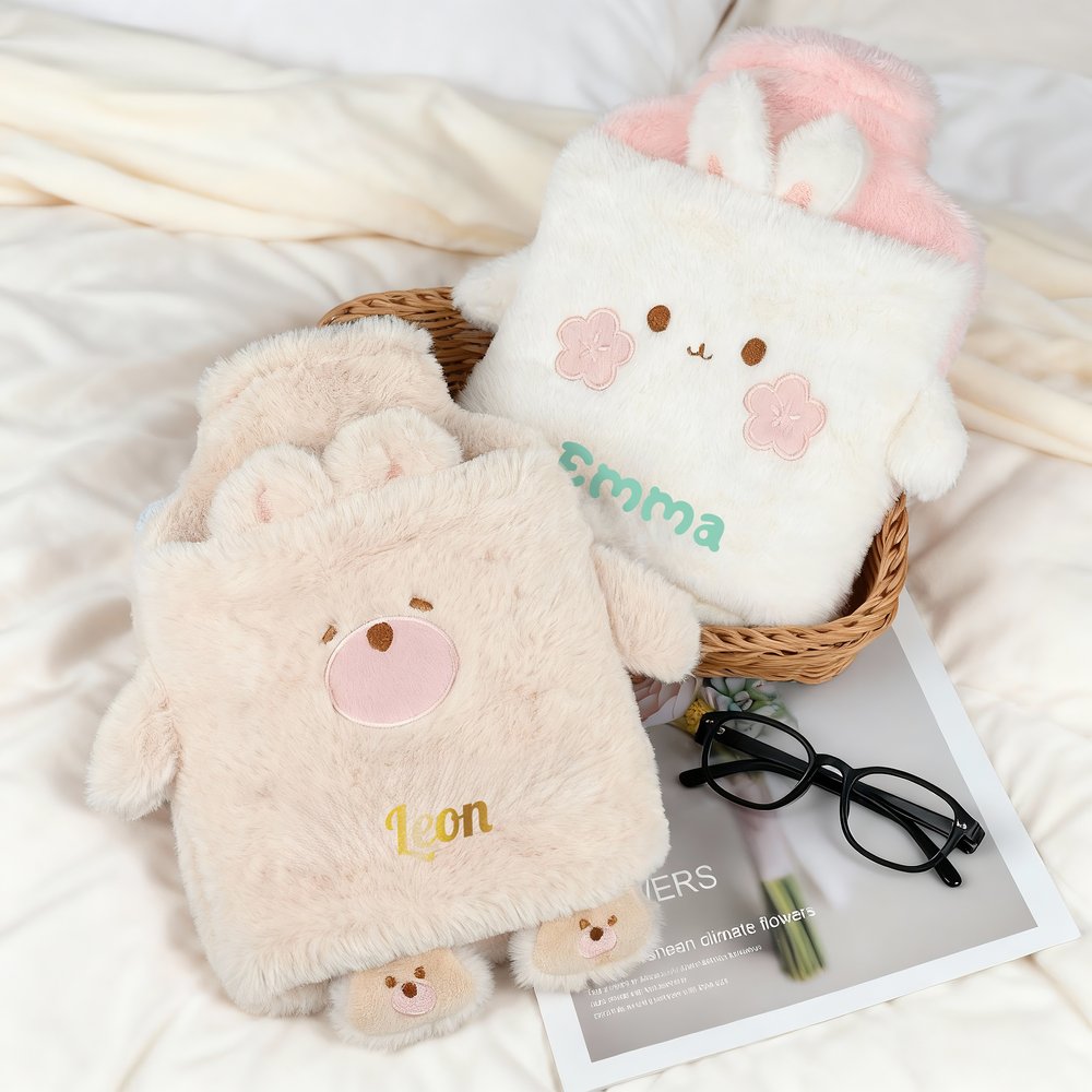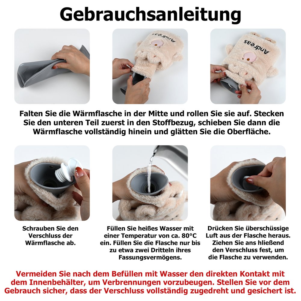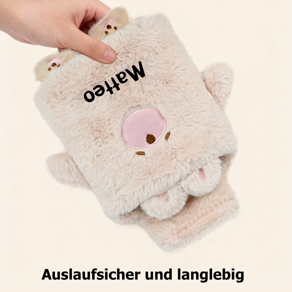Personalisierte 1 Liter Plüsch-Wärmflasche im niedlichen Tier-Design mit Namen Wohnen Reisen Geburtstag Winter Weihnachten Geschenk für Kinder Freunde