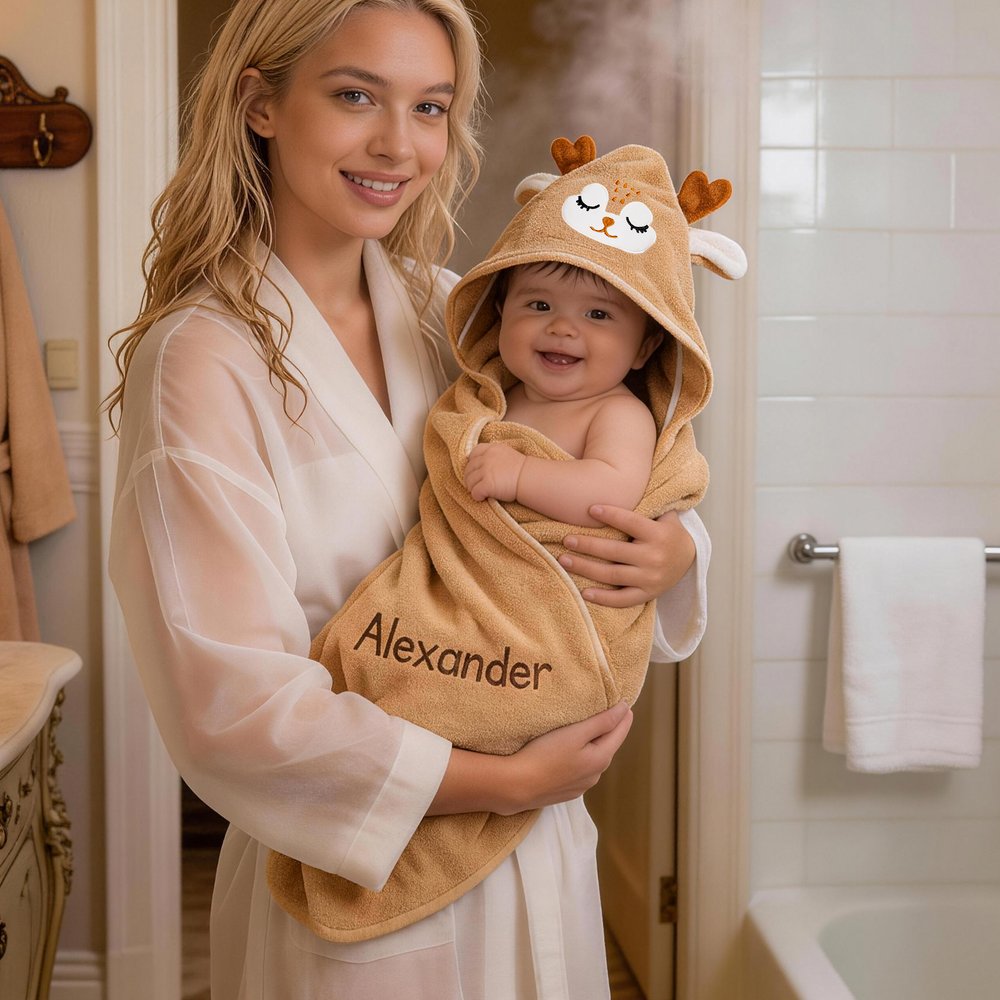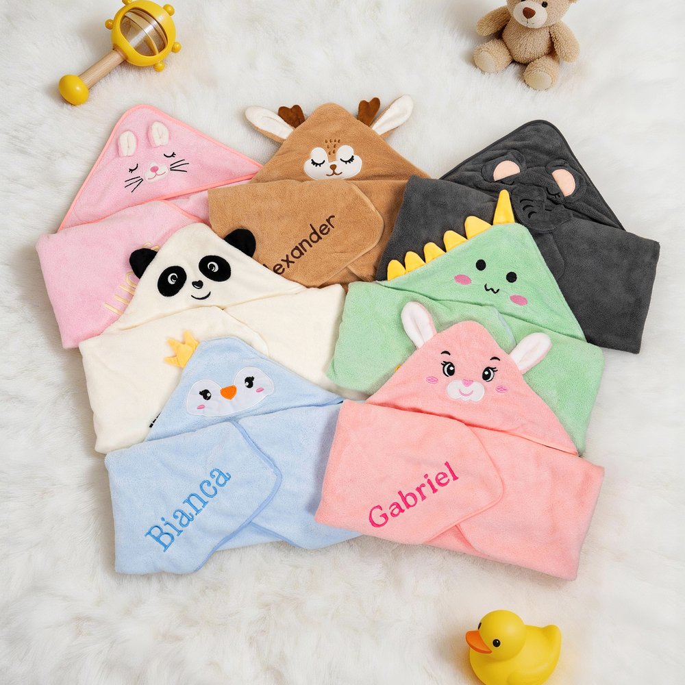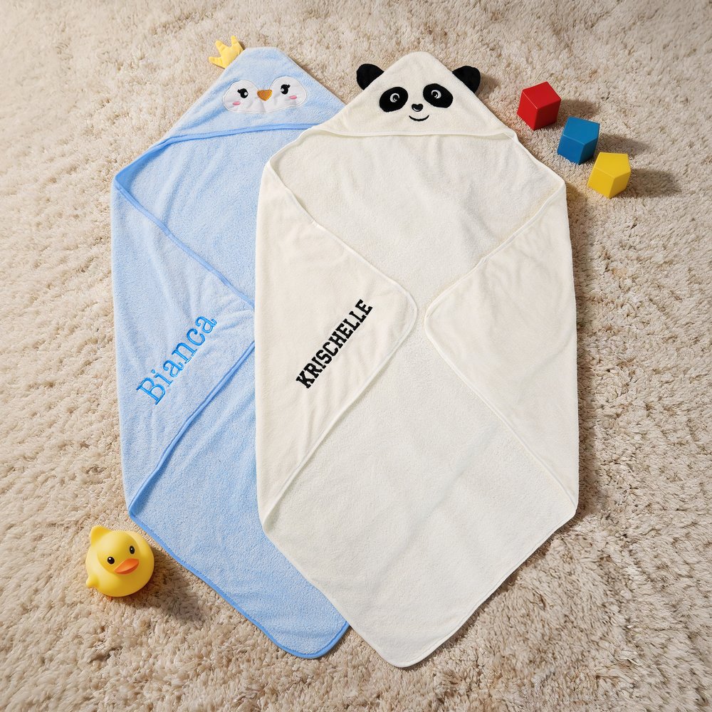 Dieses Badetuch mit Kapuze hat eine niedliche Kapuze in Form eines Tieres, die ein wirklich herzerwärmendes und beruhigendes Aussehen hat. Es bietet eine Vielzahl von beliebten Tiermotiven, die den niedlichen und liebenswerten Gesichtsausdruck des Babys einfangen. Sie können den Namen Ihres Babys hinzufügen und so jedes Handtuch zu einem einzigartigen und persönlichen Andenken machen, das Stil und Wärme vereint.