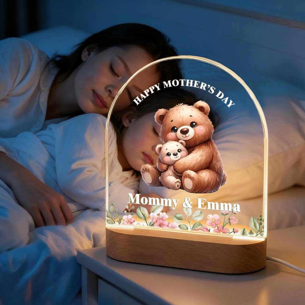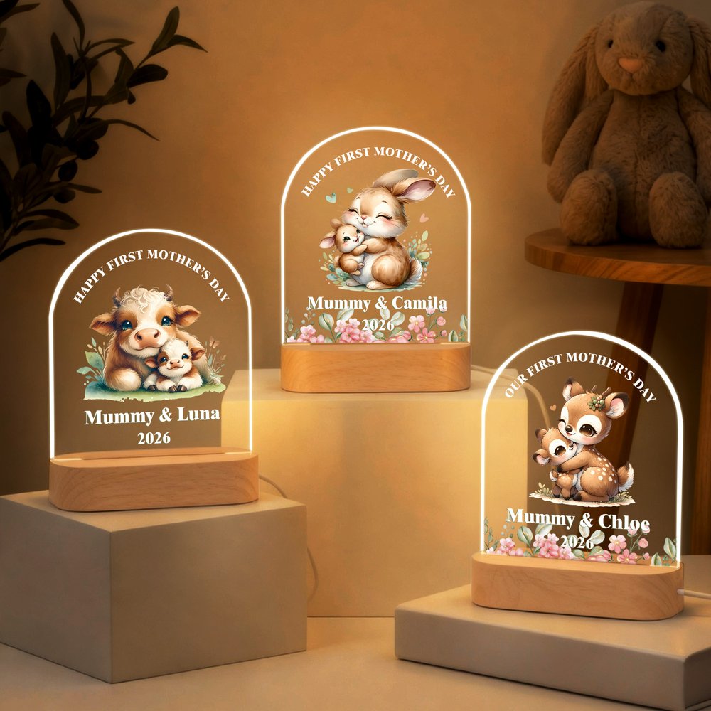 Dieses gewölbte Nachtlicht zeigt als Kernstück liebenswerte Eltern-Kind-Illustrationen in Form von Cartoon-Tieren; jede Szene fängt auf zarte Weise herzerwärmende Momente der mütterlichen Liebe im Tierreich ein. Gepaart mit rührenden Botschaften wie "Happy First Mother's Day" und "Our First Mother's Day", anpassbaren Namen für Mama und Baby und zarten Blumenakzenten wird diese Lampe zu einem exklusiven emotionalen Andenken, das die kostbaren Momente des Muttertags für immer bewahrt.