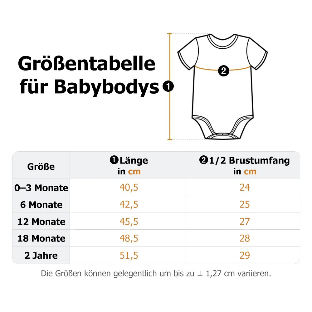 | Größe: | Babybody: 0–3 Monate, 6 Monate, 12 Monate, 18 Monate, 2 Jahre T-Shirt: S, M, L, XL, XXL, 3XL, 4XL, 5XL, 6XL |