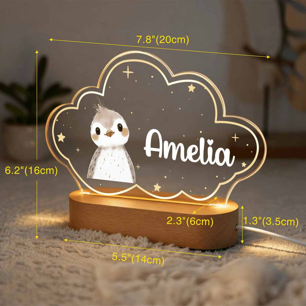 Dieses Nachtlicht zeichnet sich durch niedliche Tiere als Hauptdesign aus und kombiniert leuchtende Farben mit einer skurrilen, wolkenähnlichen Form, die Kinder absolut lieben. Sie können auch die Namen anpassen, um eine persönliche Note hinzuzufügen. Dieses verspielte Design erhöht nicht nur den Spaß, sondern erfüllt auch jede Nacht mit Wärme und einer verträumten Atmosphäre.