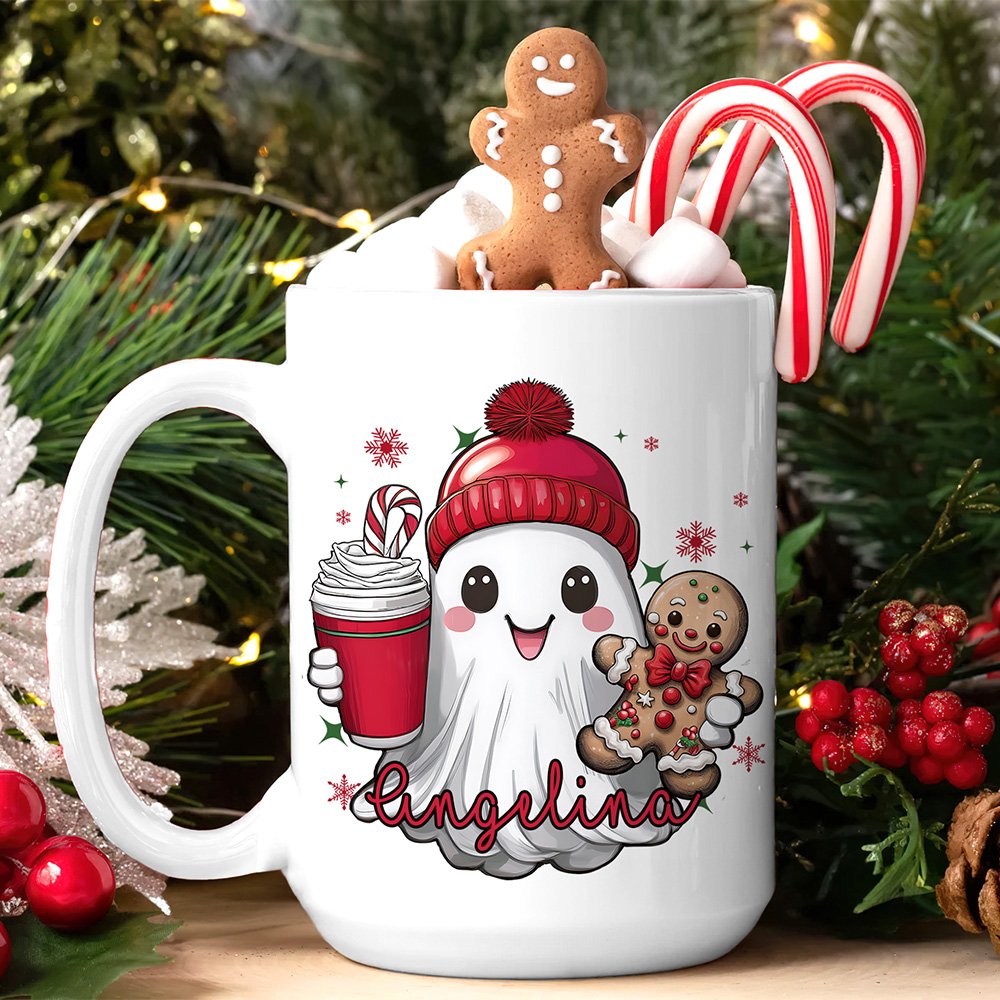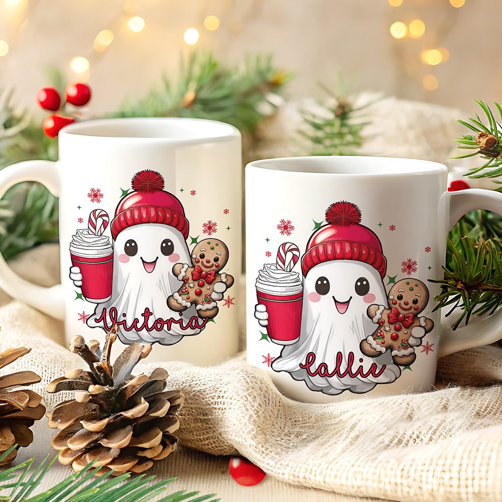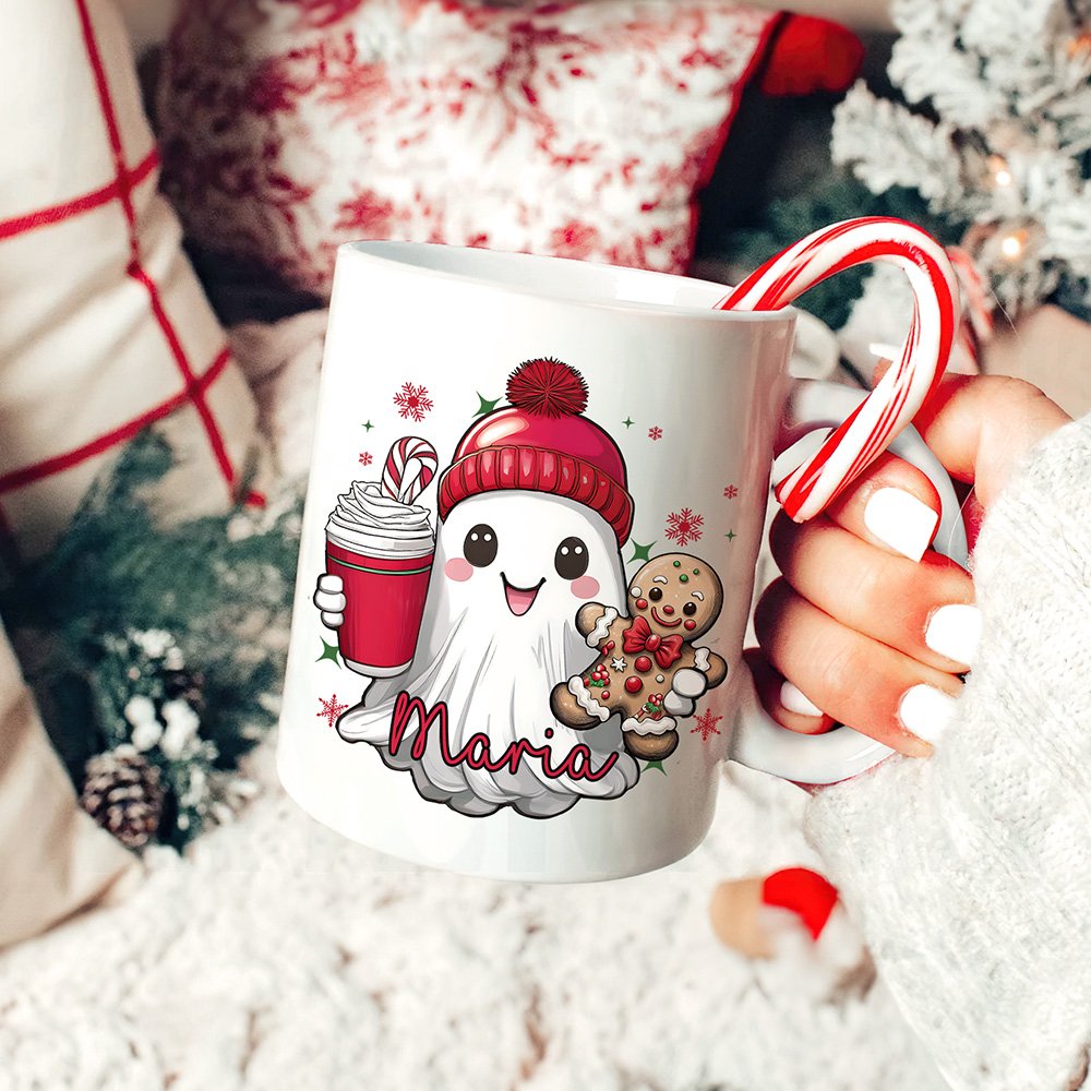 Das niedliche Beanie-Geist-Design ist sowohl gruselig als auch liebenswert und damit die perfekte Ergänzung zu Ihrer Weihnachtsdekoration. Die Lebkuchenmänner, Zuckerstangen und Schneeflocken verleihen der Tasse einen festlichen Charme und stimmen auf die Weihnachtszeit ein. Ganz gleich, ob Sie an einem kalten Wintermorgen vor dem Kamin einen heißen Kakao oder eine Tasse Kaffee trinken, diese Tasse zaubert Ihnen garantiert ein Lächeln ins Gesicht.