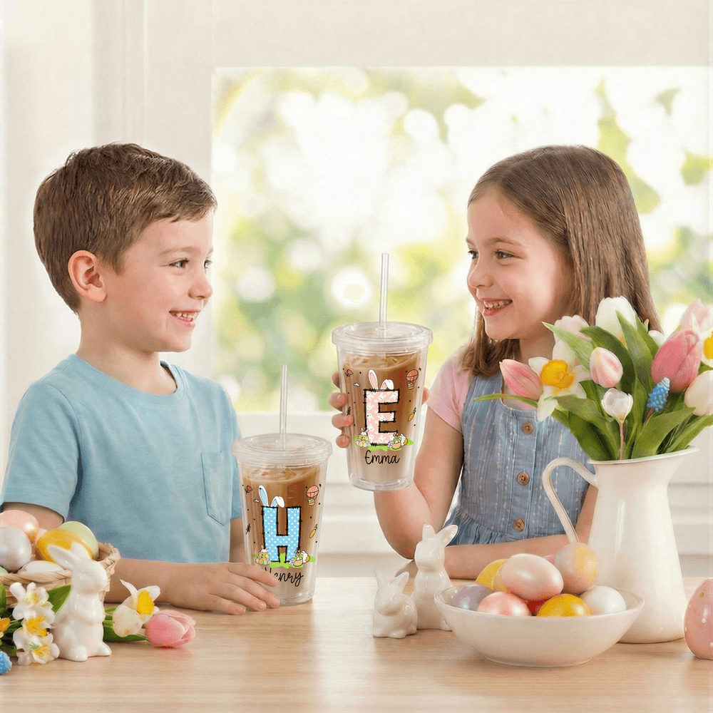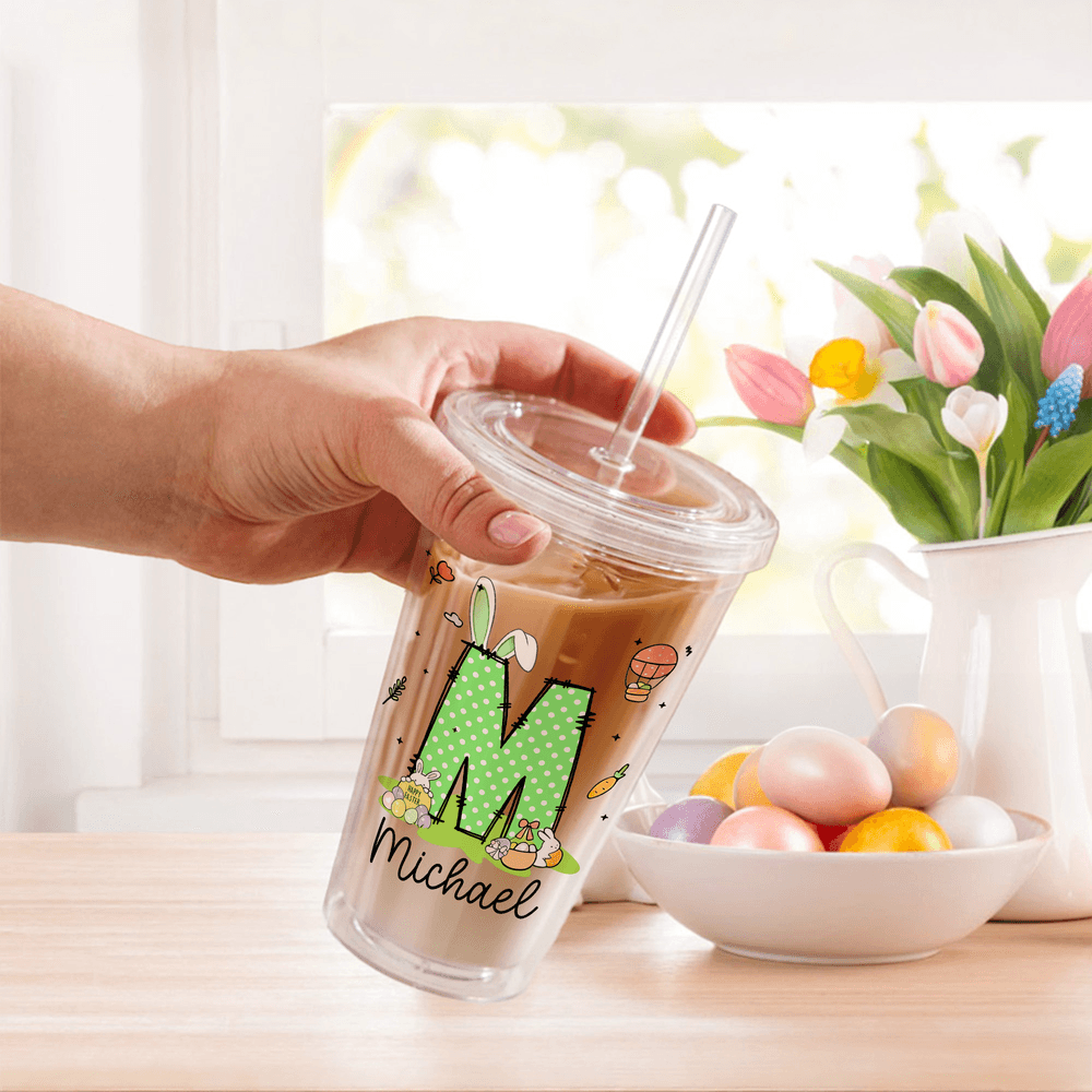 Die Wasserflasche ist mit verspielten Osterhasen-Alphabetmustern verziert, wobei jeder Buchstabe mit individueller Kreativität gestaltet ist, die festlichen Spaß mit künstlerischer Schönheit verbindet und die tägliche Flüssigkeitszufuhr in einen Moment lebendigen Charmes verwandelt.