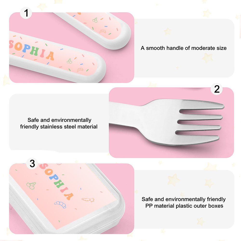Messer, Gabel und Löffel sind aus lebensmittelechtem Edelstahl gefertigt, sicher, ungiftig und korrosionsbeständig und erfüllen die Gesundheitsanforderungen für Kinder. Die Oberfläche ist glatt poliert und hat abgerundete Kanten, um Kratzer an den empfindlichen Mündern und Händen der Kinder zu vermeiden. Die Namen sind fest aufgedruckt und verblassen nicht. Das mitgelieferte Etui ist stabil und lässt sich leicht aufbewahren und transportieren.
