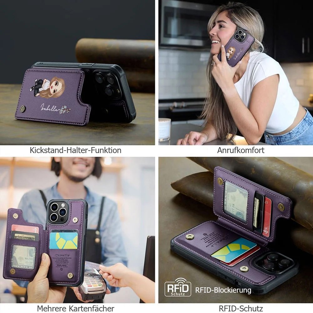 Die Tasche im Brieftaschenformat verfügt über einen doppelten Magnetverschluss, der dafür sorgt, dass Ihr Telefon sicher an seinem Platz bleibt. Außerdem verfügt sie über eine praktische Standfunktion, mit der Sie Ihr Telefon unabhängig aufstellen können, um freihändig Videoanrufe zu tätigen, zu lesen oder Ihre Lieblingssendungen zu schauen.