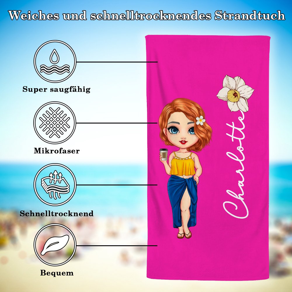 Das Design dieses Strandtuchs ist lebendig und auffällig. Es kombiniert Strandurlaub-Stil-Charakter Kostüme mit Geburtstag Blumen. Sie können Spaß und niedlichen Cartoon-Charaktere nach Ihrem Bild machen, um Ihre Persönlichkeit auszudrücken. Sie können auch Ihren Namen darauf schreiben, und die Geburtstagsblume wird mit dem Namen des Namens kombiniert, um es unverwechselbar zu machen. Die verspielte Kombination von Farben und Mustern bringt Spaß und modische Elemente zu deinem Strandausflug