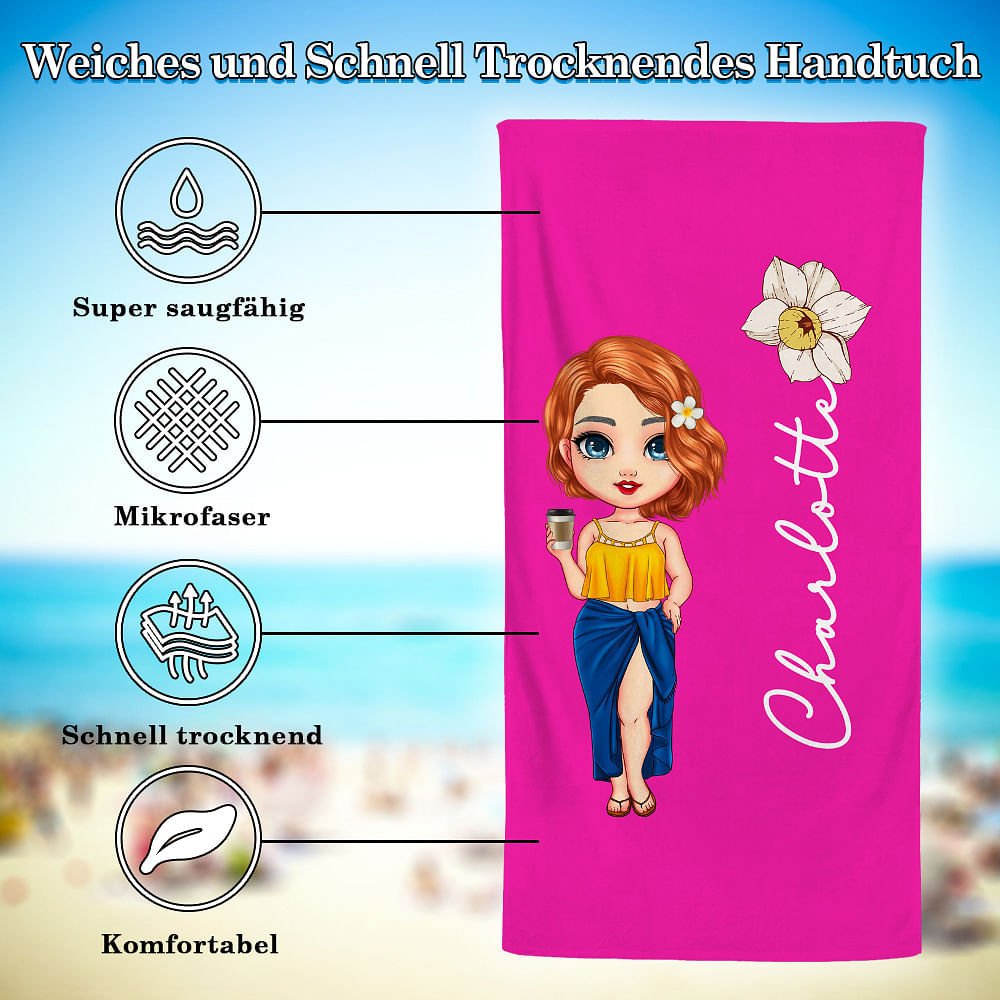 Das Design dieses Strandtuchs ist lebendig und auffällig. Es kombiniert Strandurlaub-Stil-Charakter Kostüme mit Geburtstag Blumen. Sie können Spaß und niedlichen Cartoon-Charaktere nach Ihrem Bild machen, um Ihre Persönlichkeit auszudrücken. Sie können auch Ihren Namen darauf schreiben, und die Geburtstagsblume wird mit dem Namen des Namens kombiniert, um es unverwechselbar zu machen. Die verspielte Kombination von Farben und Mustern bringt Spaß und modische Elemente zu deinem Strandausflug