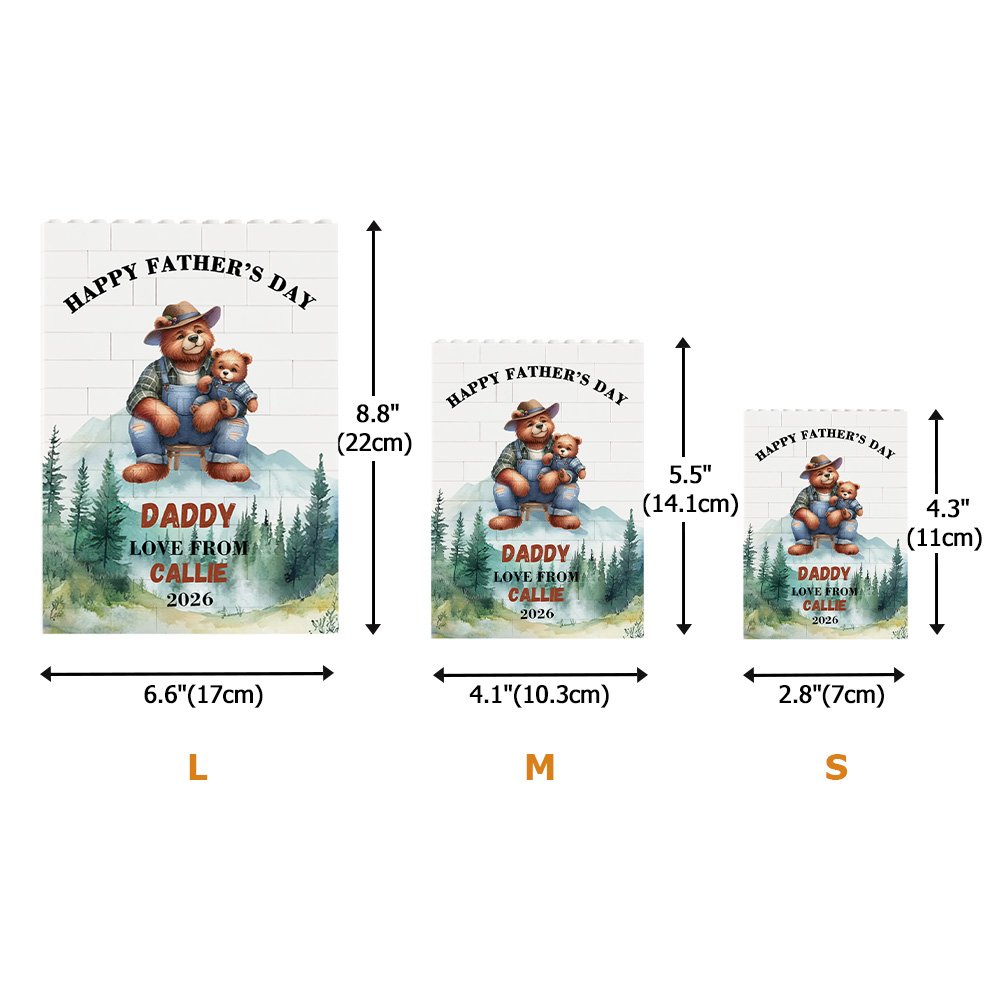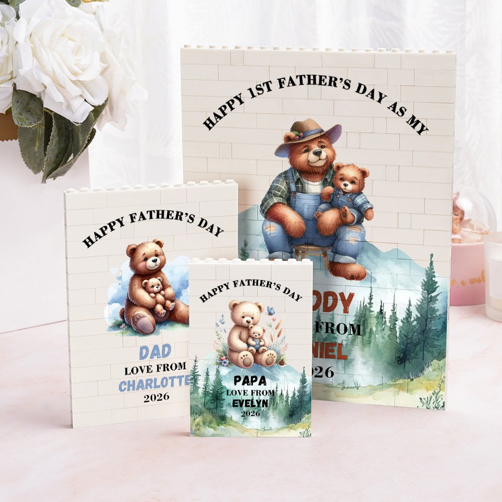 Diese Bausteinpuzzles zeichnen sich durch ein grafisches Design aus, das lebendige Grafiken mit warmen Worten verbindet und so auf jeden Blick Wärme vermittelt. Es gibt zwei Titel zur Auswahl, und Sie können den Titel nach Ihren Wünschen gestalten. Außerdem kann das niedliche Cartoon-Bärenmuster mit dem Namen deines Vaters und deines Kindes personalisiert werden, und du kannst aus verschiedenen Farben wählen, um es zu einem einzigartigen Geschenk zu machen.
