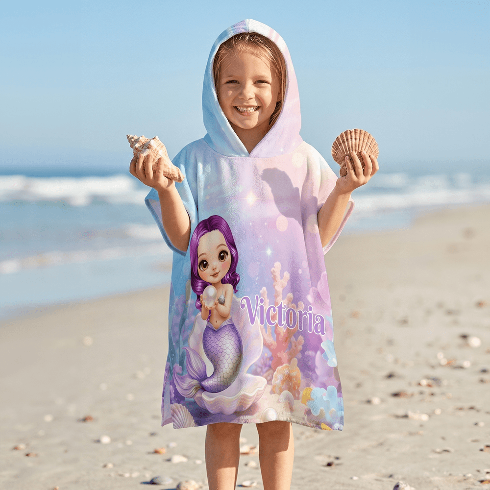 Personalisierte niedlichen Cartoon Meerjungfrau überdimensioniert schnell trocken Kind Kapuzen Strandtuch mit Namen Sommer Urlaub Party Geburtstag Geschenk für Mädchen