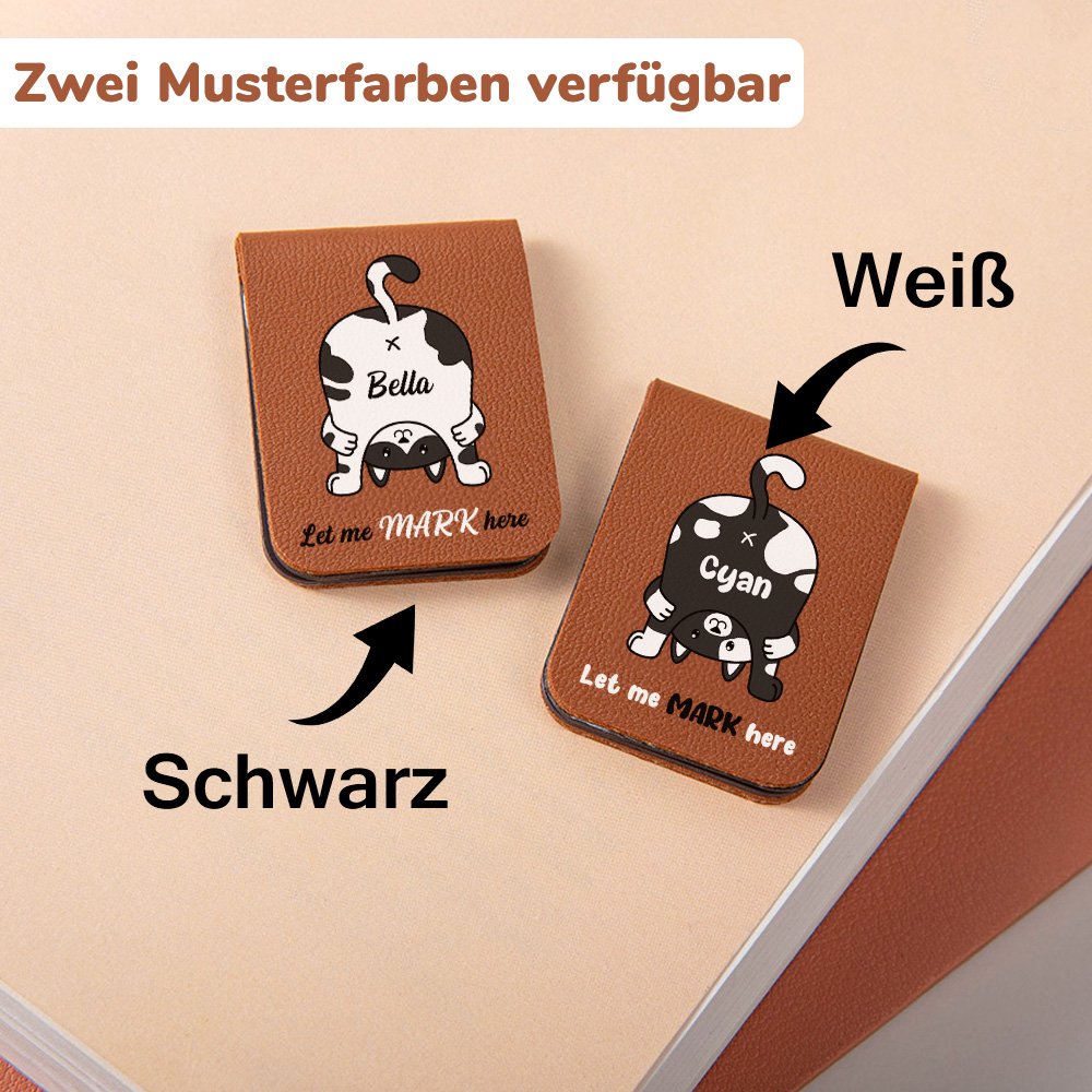 Das Lesezeichen präsentiert eine ansprechende Cartoon-Katze mit einem individuell anpassbaren Namen, der auf den Körper gedruckt ist. Ein unterhaltsamer Text, der anpassbar ist, ergänzt den Namen und ermöglicht eine Interaktion und Personalisierung. Das Design des Lesezeichens ist warm und voller Kinderfreude, was die Lesezeit zu einem besonderen Erlebnis macht.