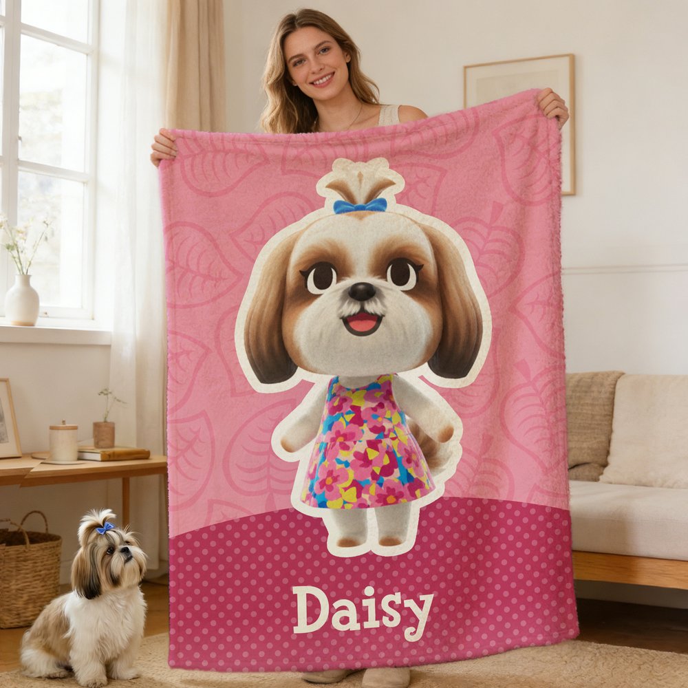 Verwandle deinen pelzigen Freund in die liebenswerte Figur deiner Träume mit dieser personalisierten Haustier-Charakter-Decke! Ihr hochgeladenes Haustierfoto wird in eine charmante 3D-Spielfigur in der Q-Version verwandelt. Wählen Sie aus 10 leuchtenden Hintergrundfarben und einer Vielzahl niedlicher Stile, fügen Sie einen eigenen Namen hinzu und erstellen Sie ein einzigartiges Design, das das virtuelle Inselleben mit dem realen Leben verbindet.