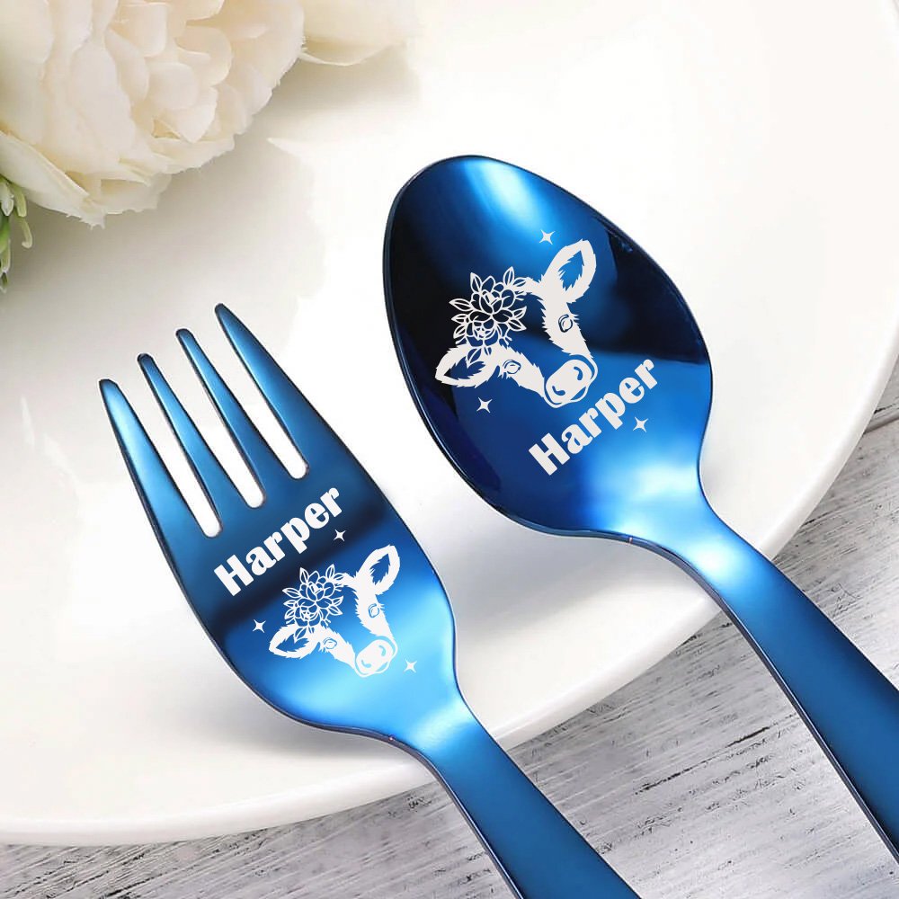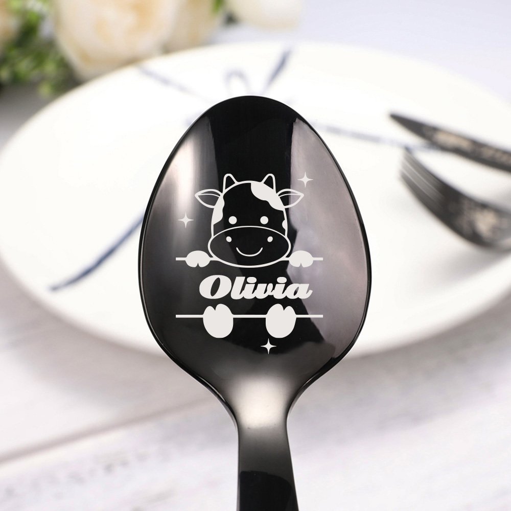 Das niedliche Kuh-Besteck ist das beste Geschenk für Kuh-Liebhaber. Niedliche Kühe sind auf dem Löffel eingraviert, damit das Essen mehr Spaß macht. Das Muster ist lasergraviert und kann für immer erhalten werden. Der Löffel ist gesund und hygienisch, und es ist einfach für Kinder zu halten.