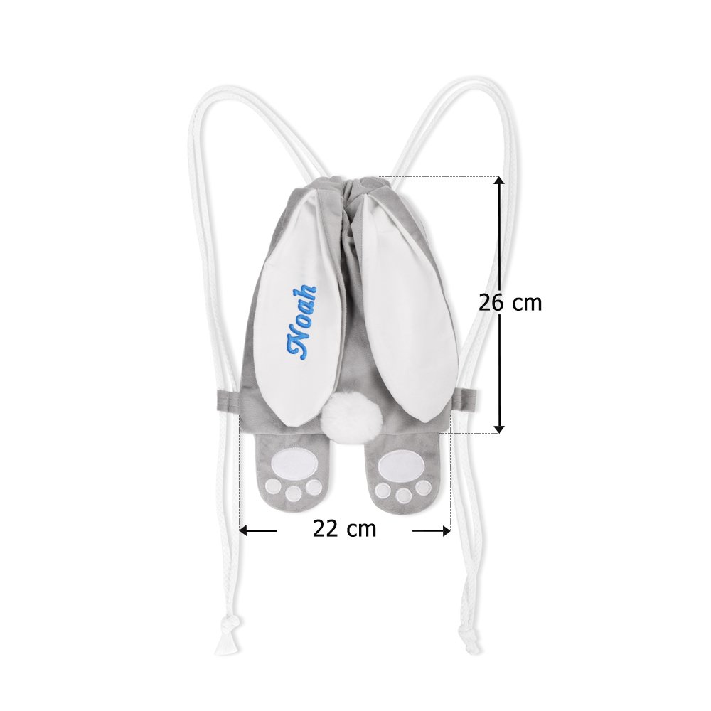 Das Highlight dieses Kinderrucksacks sind die dreidimensionalen Hasenohren und der flauschige Bommelschwanz. Die zarten Stickereien an den Ohren sowie das weiche Samtmaterial unterstreichen das niedliche Hasenmotiv auf wunderbare Weise. Diese Kordeltasche ist weit mehr als nur ein praktischer Begleiter – sie verbindet ansprechendes Design mit kindlichem Charme und begeistert kleine Kinder sofort. Perfekt geeignet für die Osterabenteuer.
