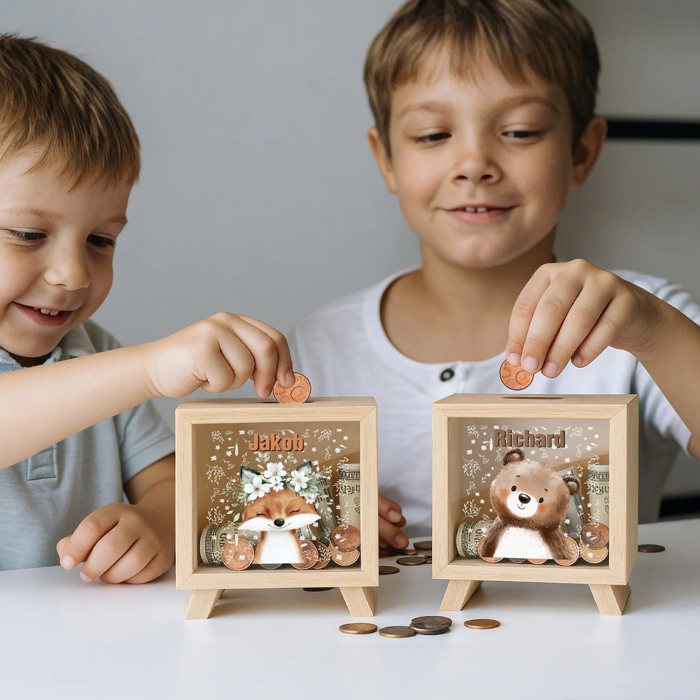 Dieses charmante Sparschwein überzeugt durch eine Vielzahl liebevoll gestalteter Tier- und Blumenmotive, die Kinder sofort begeistern. Die Möglichkeit, sowohl das Tiermotiv als auch den Namen des Kindes individuell anzupassen, macht das Sparen zu einem spielerischen und persönlichen Erlebnis, das Freude bereitet und die Kreativität anregt. Es ist ideal für Kinderzimmer und Kinderstuben geeignet und verbindet praktische Funktionalität mit einer originellen Dekoration, die sowohl Jungen als auch Mädchen anspricht.
