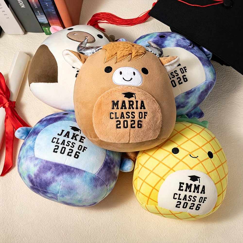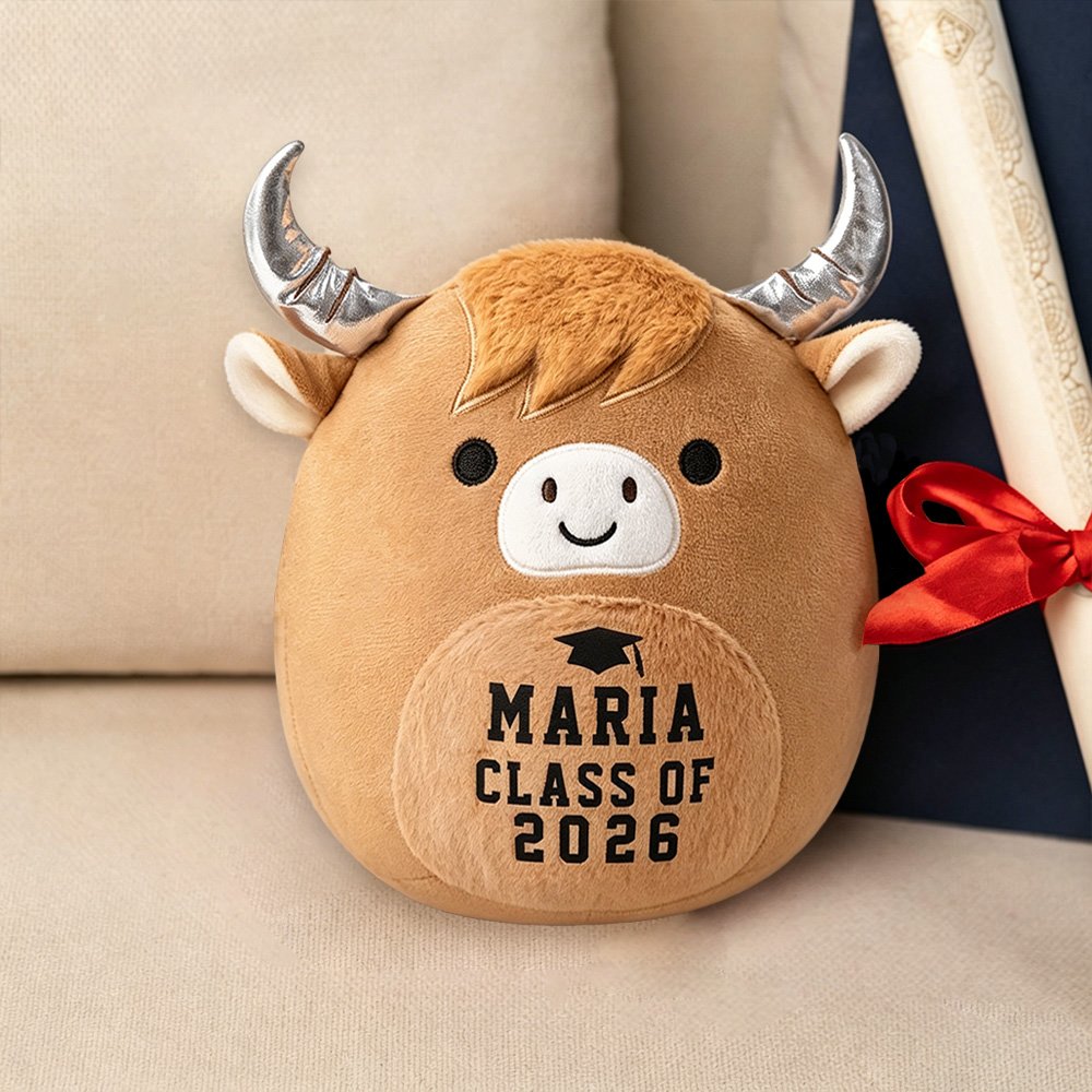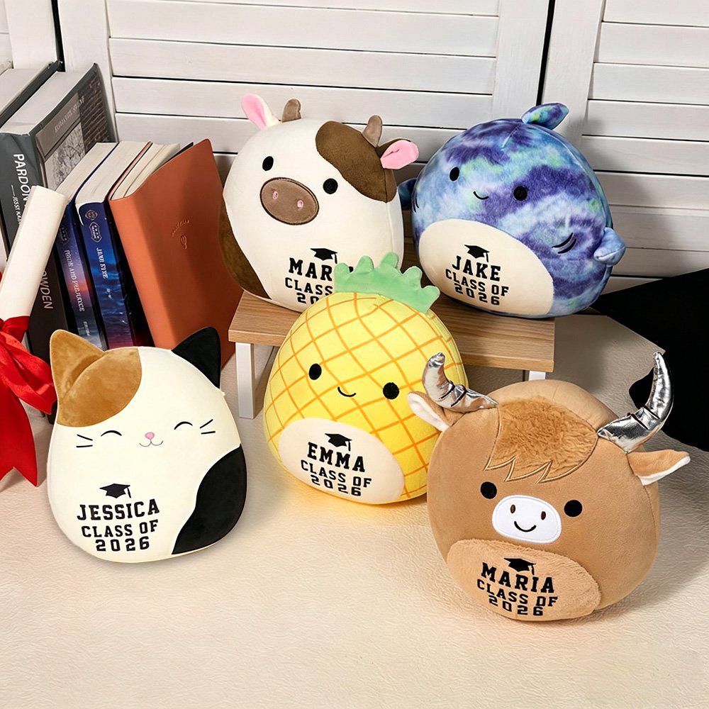 Dieses Plüschtier hat ein liebenswertes Tiermotiv, wie z.B. eine Kuh, ein Schwein, ein Koala, eine Katze usw., das alle Absolventen anspricht. Feiern Sie die Errungenschaften der Absolventen mit unserem niedlichen Plüschtier, das mit ihrem Namen und dem Jahr ihres Abschlusses versehen ist. Ein perfektes Andenken, um den besonderen Moment in Erinnerung zu behalten!