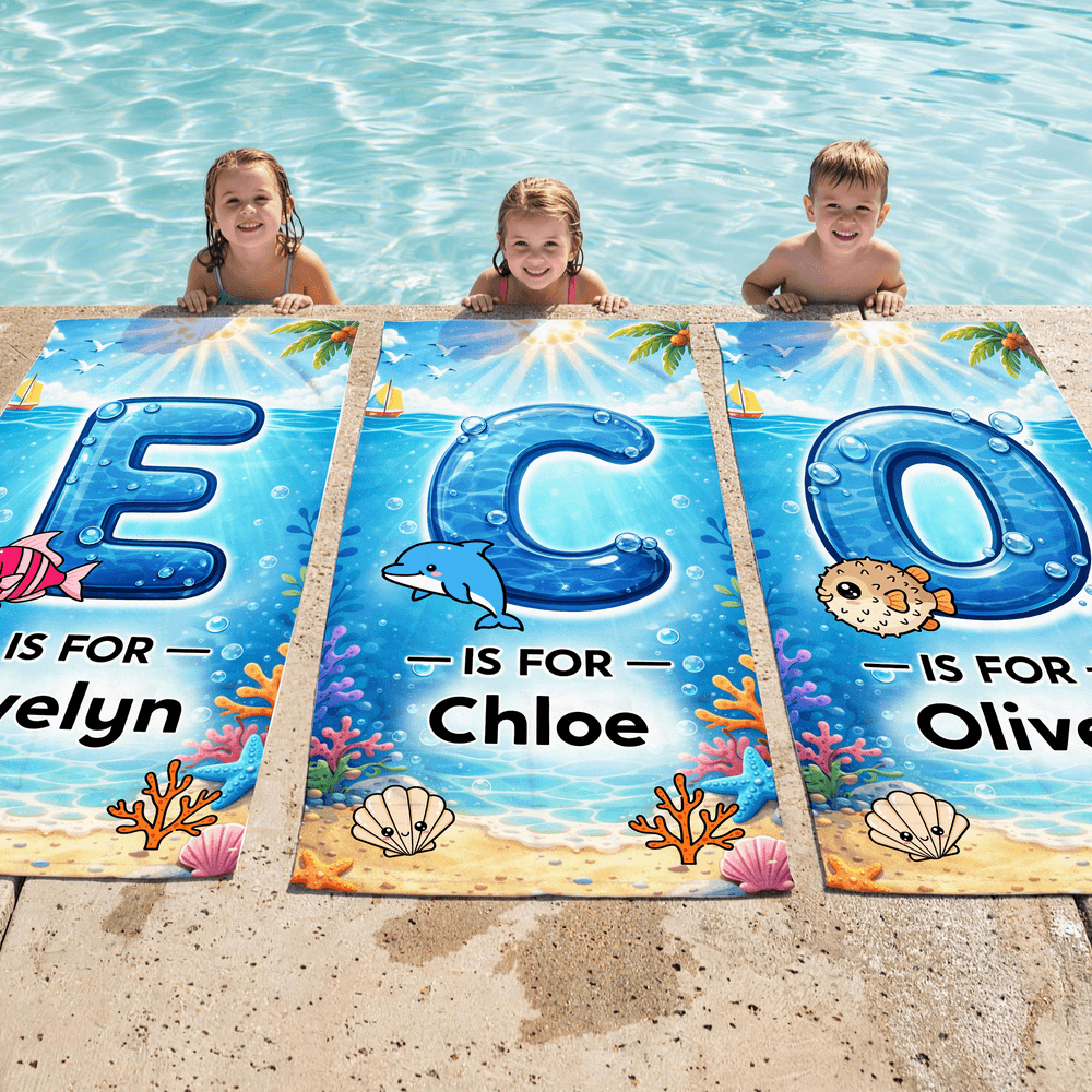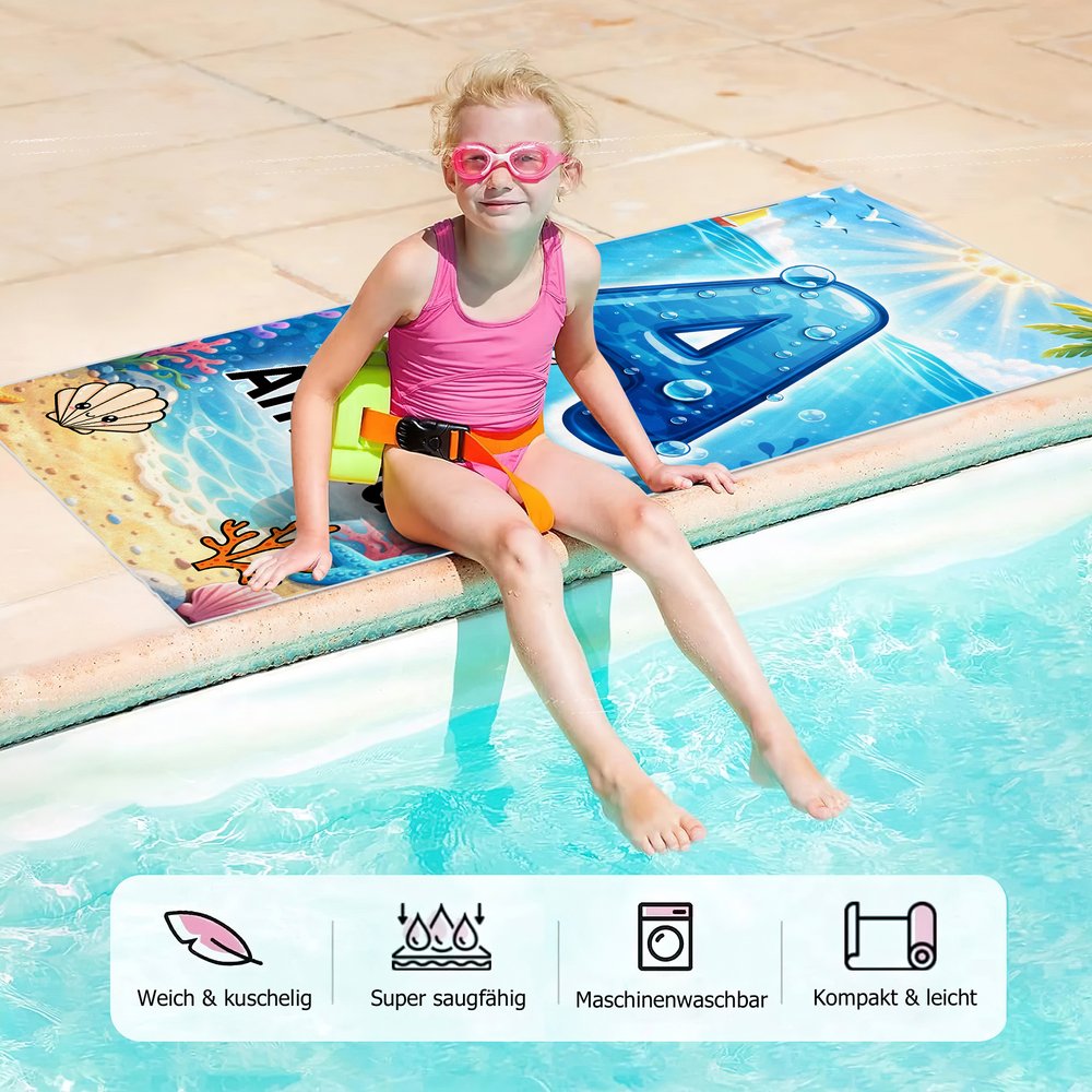 Speziell für kleine Entdecker im Kindergartenalter und mutige Schwimmanfänger entwickelt – dieses Strandtuch ist das perfekte Geschenk zum Geburtstag, zu den Ferien oder für den nächsten Sommerausflug. Mit dem eigenen Namen und der persönlichen Initiale wird es für Ihr Kind zu einem ganz besonderen Schatz. Es stärkt das Zugehörigkeitsgefühl und lässt wundervolle Sommererinnerungen entstehen, die ein Leben lang bleiben.