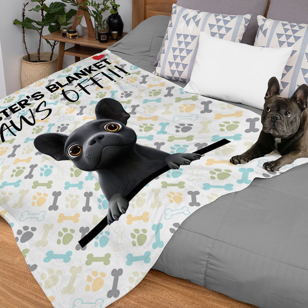 Diese Decke verfügt über eine niedliche 3D-Cartoon-Hund Bild, mit auffälligen Slogans wie "PROPERTY OF" und "Paws Off", die voll von Spaß und Persönlichkeit ist. Die einzigartige Namensanpassung macht die Decke ein warmes Souvenir exklusiv für Sie und Ihr Haustier, zeigt den einzigartigen Geschmack der Tierbesitzer.