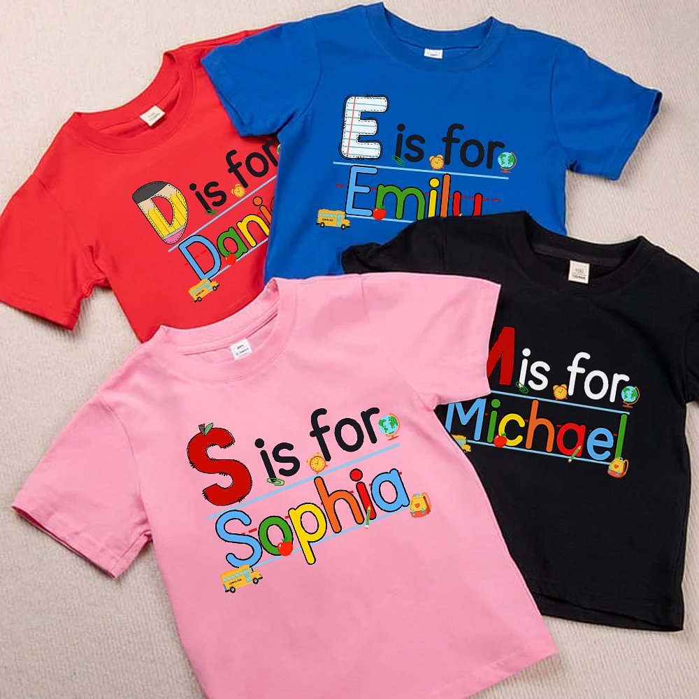Diese Kinderkleidung ist mit lustigen Schulelementen gestaltet, darunter die klassischen Initialen Bleistift, Apfel und horizontale Linie des Notizbuchs, während die Muster Schulbus, Schultasche und Globus eine starke buchhafte Atmosphäre schaffen. Darüber hinaus können Sie den Namen Ihres Kindes mit verschiedenen Farbdesigns und Initialen individuell gestalten, um eine "Schuluniform" nur für Ihr Kind zu schaffen.