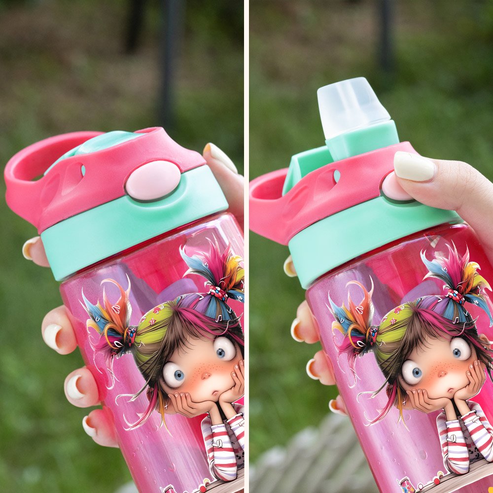 Diese Wasserflasche wurde speziell für kleine Mädchen entworfen und zeigt ein süßes Cartoon-Mädchen und einen Namen, was sie zu einem einzigartigen und persönlichen Accessoire macht. Jedes Mädchen wird es begrüßen.