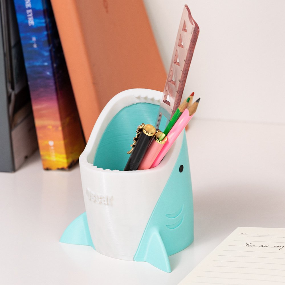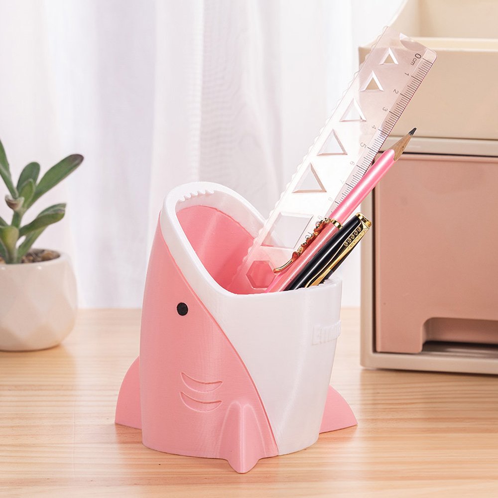 Das originelle Design dieses Stifthalters nutzt die Figur eines Hais als Inspiration, um einen praktischen und lustigen Aufbewahrungsgegenstand zu schaffen. Sein Erscheinungsbild ist lebendig und niedlich, die Haifischkiefer Position kann auch durch Hinzufügen eines Namens personalisiert werden, um es einzigartig zu machen.