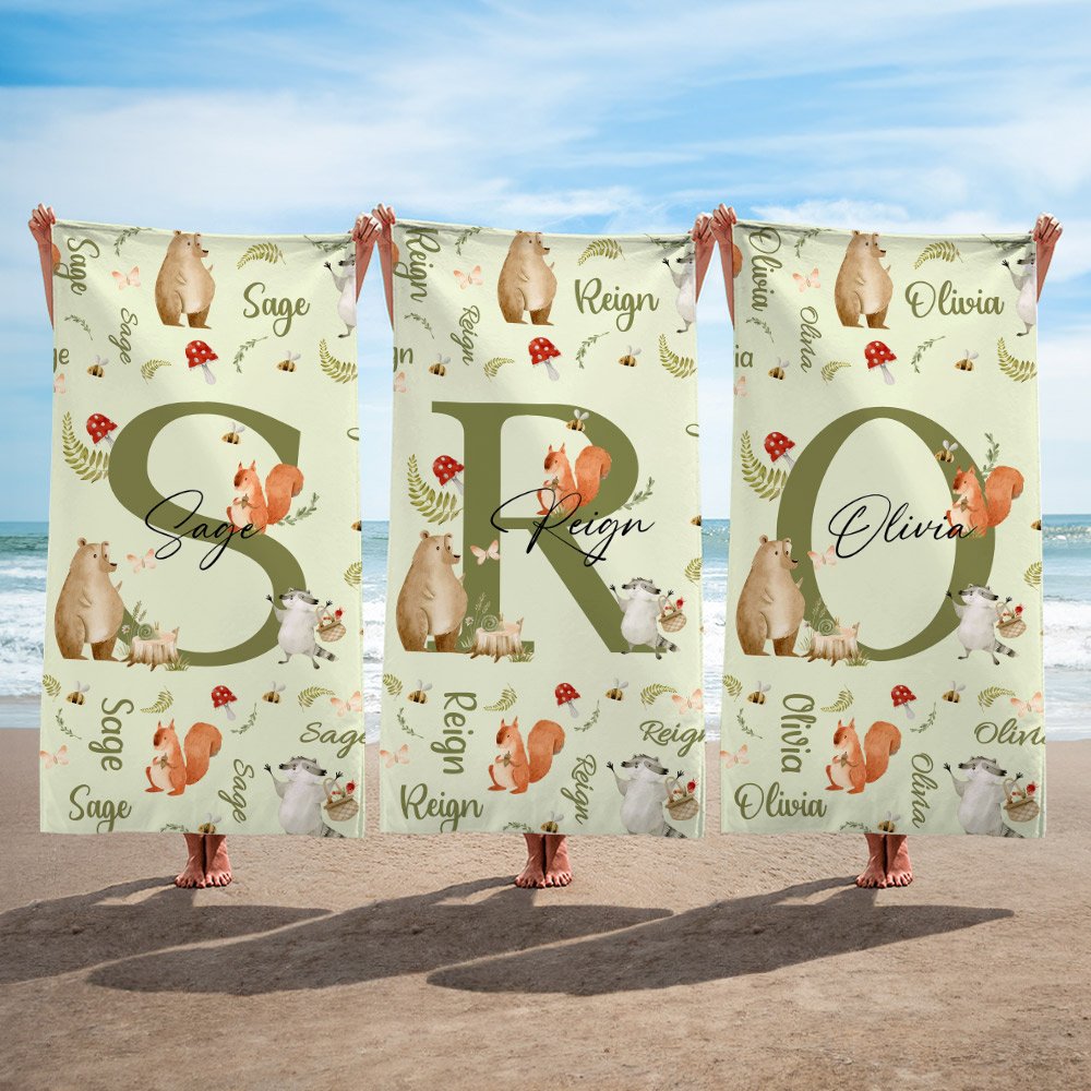 Dieses Strandtuch erzeugt einen niedlichen Wald-Effekt im Freien mit Mustern von Eichhörnchen, Bären, Waschbären, Pilzen und Bienen, die eine kindliche und verspielte Atmosphäre verbreiten. Zusätzlich können Sie den Namen des Kindes angeben, um es individuell zu gestalten. Die Initialen entsprechen automatisch den Anfangsbuchstaben des von Ihnen angegebenen Namens, so dass es ein einzigartiges und stilvolles Produkt für das Kind ist.
