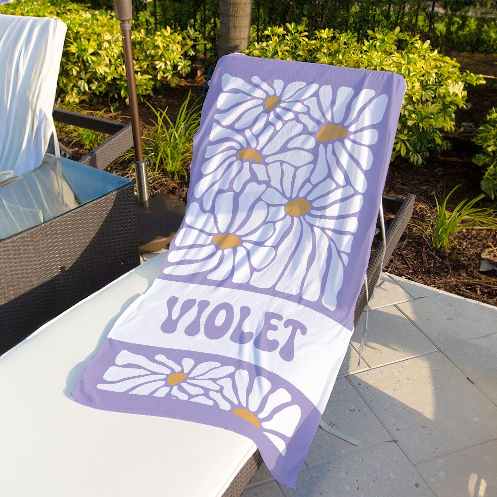 Dieses Strandtuch ist mit einem hellen und fröhlichen Gänseblümchen-Print verziert, der Ihren Sommerausflügen einen Hauch von verspielter Farbe verleiht. Es ist in 4 verschiedenen Farben erhältlich und kann mit Ihrem Namen personalisiert werden, um ein einzigartiges Stück zu schaffen, das Ihre Persönlichkeit und Ihren Stil widerspiegelt. Ganz gleich, ob Sie es für sich selbst oder als Geschenk für einen Freund verwenden, dieses individuelle Strandtuch wird mit Sicherheit ein Hit sein!