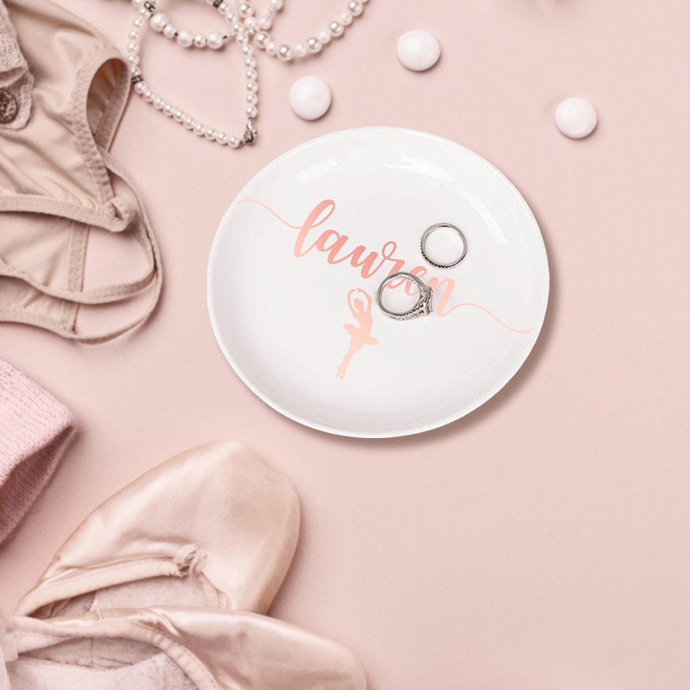 Diese Schmuckschale verfügt über eine schöne Tanz Ballerina Silhouette Design mit 36 Mustern für Sie zur Auswahl und können den Namen anpassen. Es ist ein stilvolles und einzigartiges Geschenk für Tänzerinnen und Tänzer, die ihre Liebe zum Tanz auf eine persönliche Art und Weise festhalten.