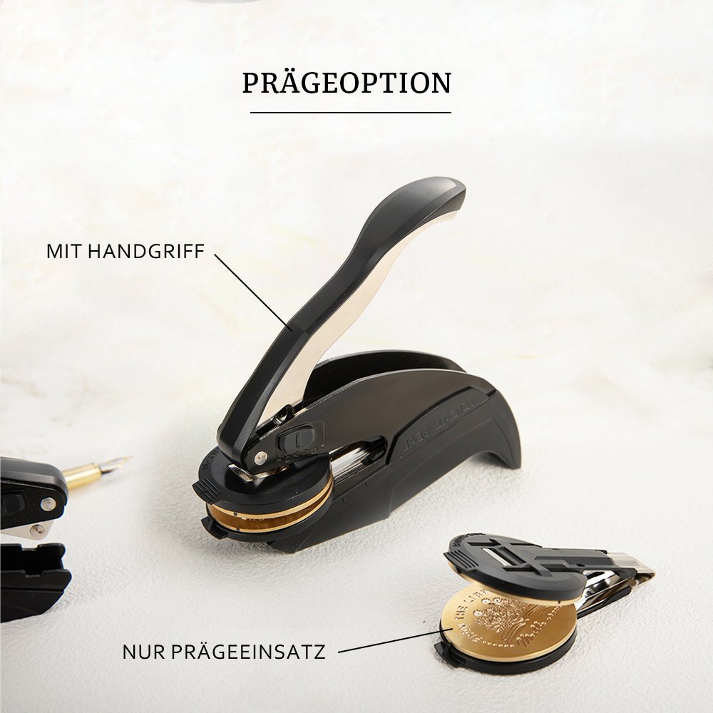 Dieser Präger wird mit großer Sorgfalt aus hochwertigen Materialien gefertigt und überzeugt durch Präzision und Langlebigkeit. Die stabile Konstruktion sowie das ergonomische Design sorgen für eine angenehme Handhabung und einfache Bedienung. Die gravierte Prägebplatte ist detailgenau gearbeitet, sodass Ihr individuelles Motiv bei jeder Anwendung klar und sauber geprägt wird.