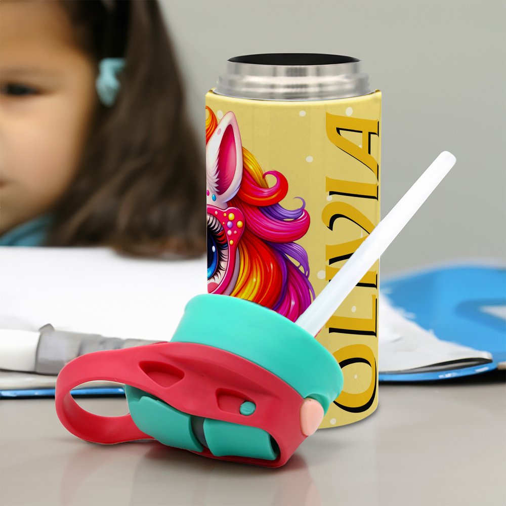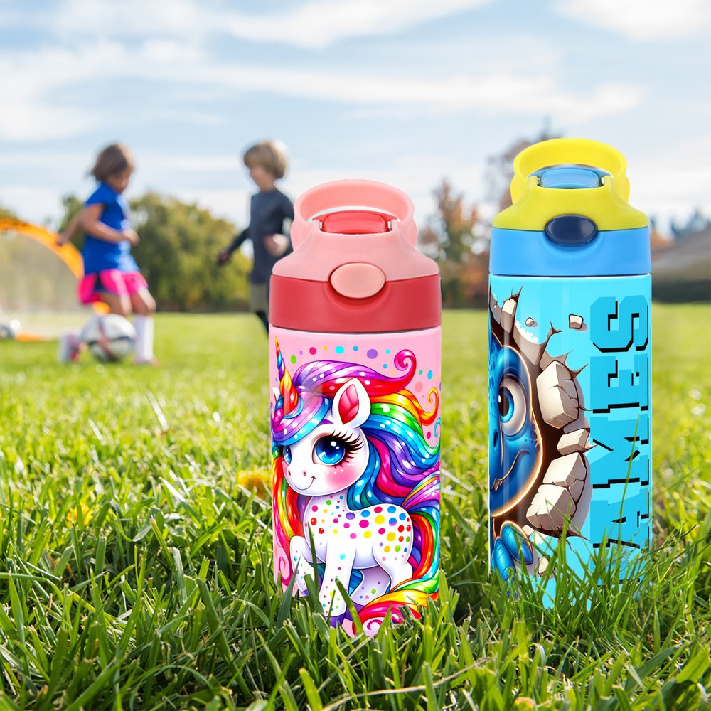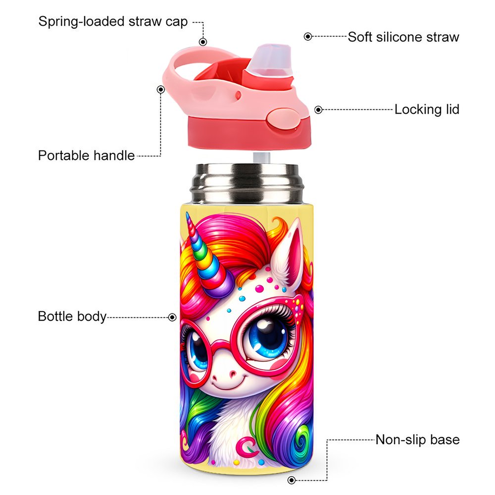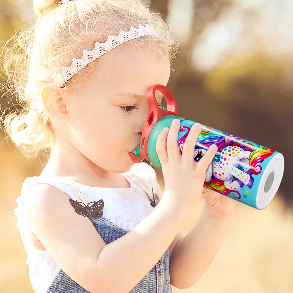 Diese Flasche ist mit lebhaften Dinosaurier- und Fantasie-Einhorn-Motiven versehen, gepaart mit leuchtenden und lebendigen Farben, die einen Gesamtstil voller kindlichem Charme und Lebensfreude schaffen. Das bezaubernde Aussehen verwandelt den Wasserbecher von einem gewöhnlichen Trinkutensil in einen "kleinen Begleiter", der sofort die Aufmerksamkeit eines Kindes auf sich zieht, so dass das Trinken von Wasser mehr Spaß macht und mühelos das Interesse an der Flüssigkeitszufuhr geweckt wird.