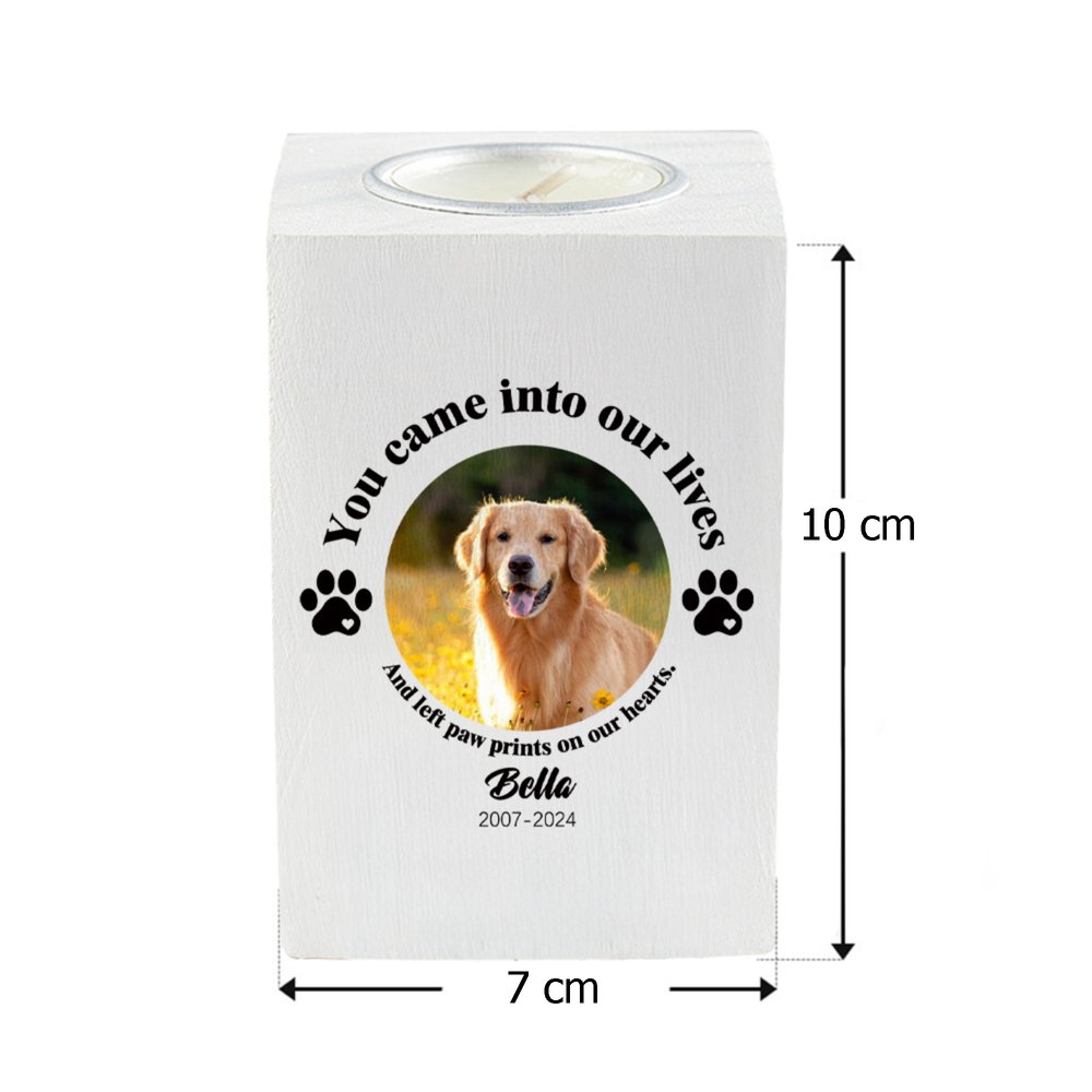Dieser individuell anpassbare Kerzenhalter bietet eine besondere Möglichkeit, die einzigartige Verbindung zu Ihrem geliebten Haustier zu ehren. Er kann mit einem Foto und dem Namen Ihres Tieres personalisiert werden. Der liebevoll gestaltete Schriftzug erinnert einfühlsam an die tiefe emotionale Bindung, die uns verbindet. Ob als Geschenk zum Feiern oder als bleibendes Andenken – dieser Kerzenhalter bewahrt wertvolle Erinnerungen auf herzliche und stilvolle Weise für viele Jahre.