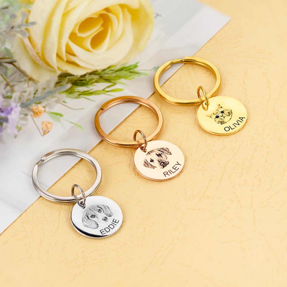 Verwandeln Sie das Foto Ihres geliebten Haustieres in einen handgefertigten, gravierten Schlüsselanhänger im Stil einer Skizze. Wir können fast alle Haustierfotos machen, nicht nur von Katzen und Hunden, sondern auch von Kaninchen, Papageien, Meerschweinchen, Hamstern, Pferden usw.