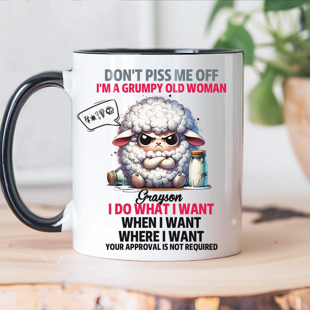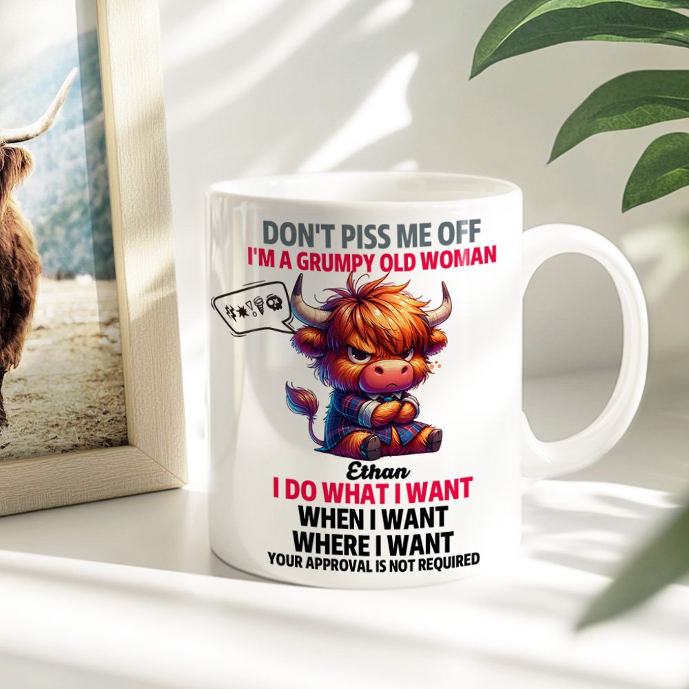 Die Tasse "Don't Piss Me Off I'm A Grumpy Old Woman" zeigt ein Cartoon-Tiermotiv mit lustigen Texten wie "I Do What I Want When I Want Where I Want", "Your Approval Is Not Required", und Sie können den idealen Look wählen, um die Persönlichkeit des Empfängers zu ergänzen, was sie zu einem einzigartigen und besonderen Geschenk macht. Darüber hinaus können optional Untersetzer mit demselben Cartoon-Tiermotiv erworben werden, die perfekt in die Wohnung eines jeden Tierliebhabers passen.