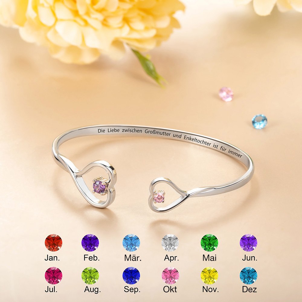 Wählen Sie die Geburtssteine von Großmutter und Enkelin individuell aus, um ein einzigartiges und besonderes Geschenk zu gestalten! Feiern Sie die besondere Bindung zwischen Ihnen und Ihrer Liebsten mit diesem Doppelherz-Armreif.