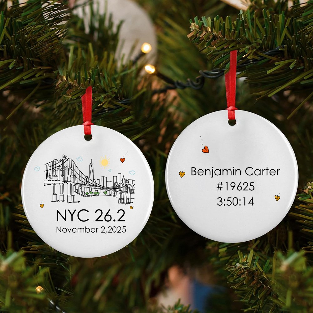 Dieses wunderschön gestaltete Ornament zeigt eine lebendige Darstellung der ikonischen Marathonstrecke und Stadtansichten auf einer Seite und einen individuellen Text auf der anderen. Die Personalisierungsoption ermöglicht es Ihnen, eine Nachricht vom Läufer zu gravieren, die einen Namen, ein Substantiv, die Dauer oder sogar ein positives Kompliment enthalten kann, was dieses Ornament zu einem wertvollen Andenken macht, das seine harte Arbeit und Hingabe ehrt.