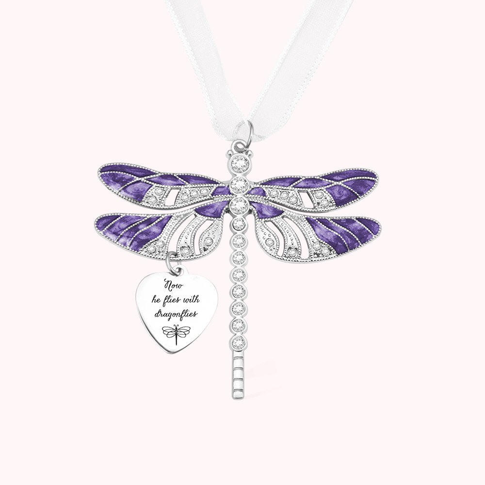 Jetzt fliegt sie mit Libellen Gedenkornament. Wie inspirierend. Sehr bedeutungsvoll. Sie ist endlich frei. Sie können Text auf den Charme hinzuzufügen. Eine schöne Libelle zum Aufhängen an einem Fenster, einer Wand, einem Weihnachtsbaum, einem Rückspiegel oder wo immer Sie möchten.