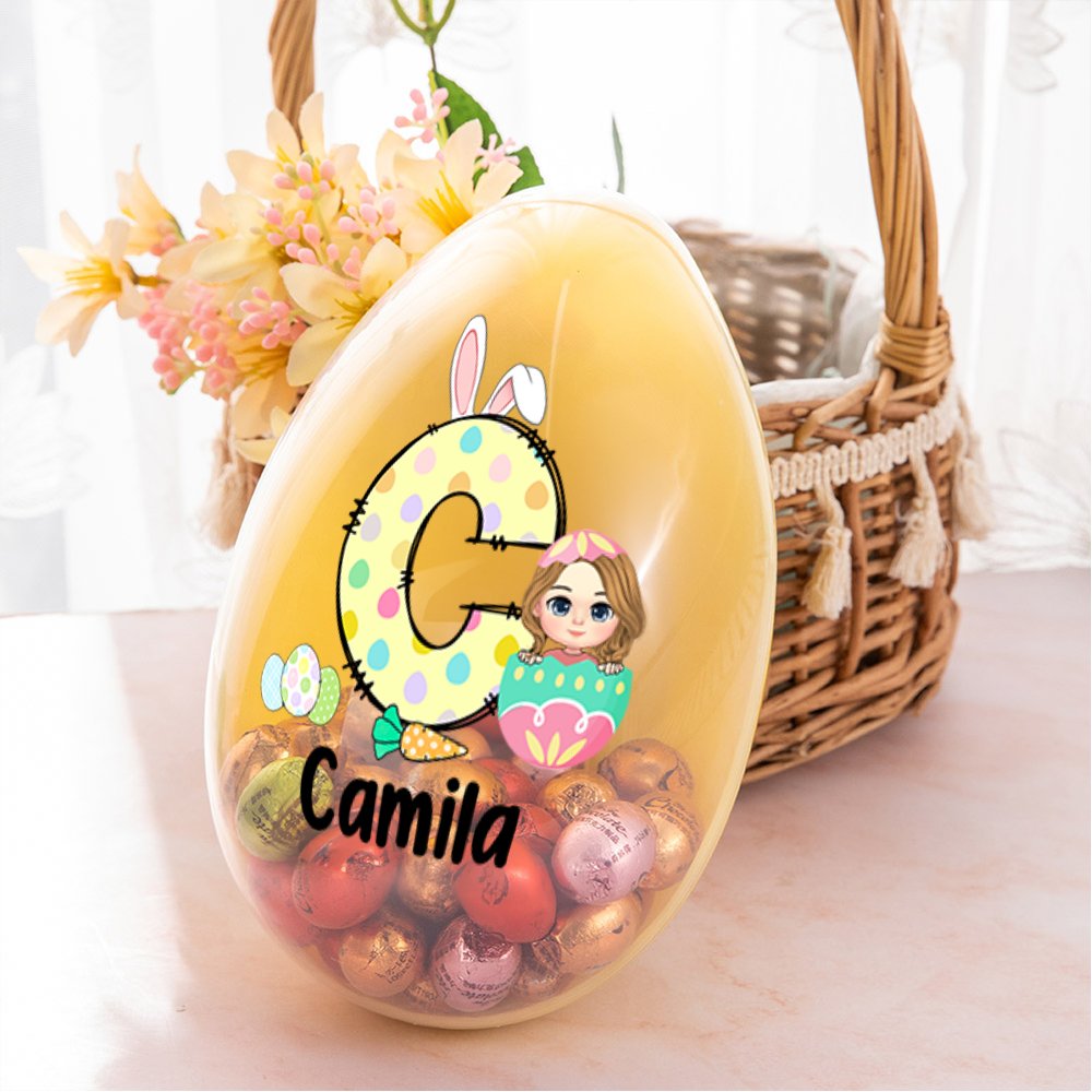 Diese leuchtenden Jumbo-Ostereier gibt es in Rosa, Gelb, Blau und Lila und können mit dem Namen Ihres Kindes personalisiert werden. Fügen Sie eine einzigartige Zeichentrickfigur in ein Ei ein und wählen Sie aus fünf verschiedenen niedlichen Initialen zum Thema Ostern, um sie zu besonderen Leckerbissen für Ihre Kleinen zu machen.