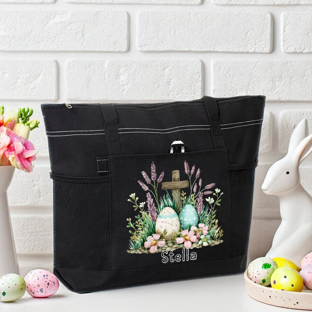 Diese Tragetasche zeichnet sich durch exquisite Ostereier- und Blumendesigns aus, mit einem Kreuzmuster, das Glauben und Segen symbolisiert, voller festlicher Heiligkeit und Frühlingsvitalität. Jede Tragetasche unterstützt die Namensanpassung, so dass jeder Benutzer einen einzigartigen und exklusiven Artikel haben kann, der perfekt den Glauben und die Persönlichkeit zeigt.
