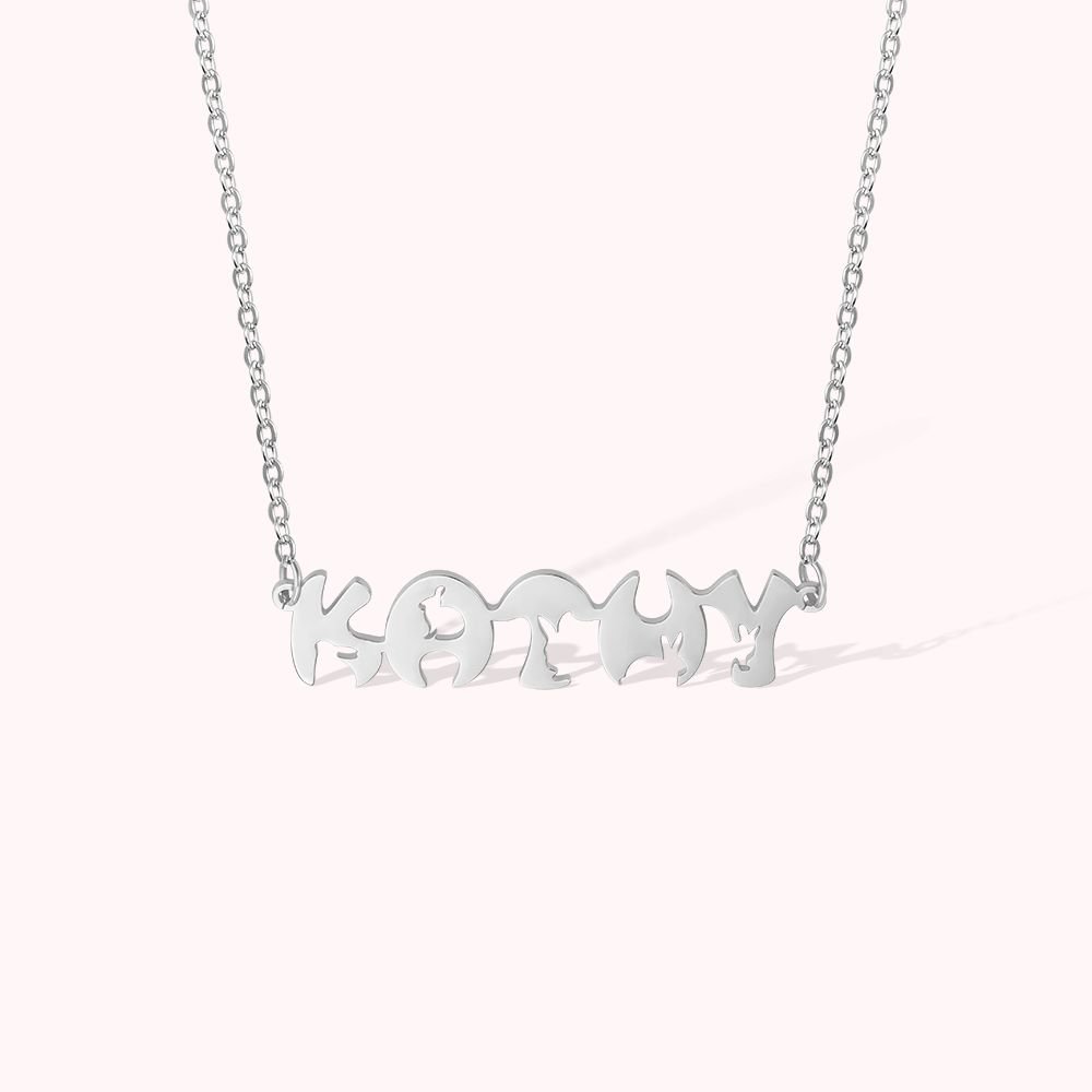 Der kleine Hase ist das Symbol für Ostern. Er verfügt über eine starke Fähigkeit zur Fortpflanzung. Man betrachtet einen Hasen als Schöpfer des neuen Lebens. Während des Festivals erzählen die Erwachsenen den Kindern, dass aus Ostereiern Hasen schlüpfen werden. Diese Namenskette kombiniert die Form eines Ostereies mit einer hasenförmigen Schrift. Es ist ein perfektes Geschenk für Menschen, die Hasen lieben oder sich für traditionellen Osterschmuck interessieren.