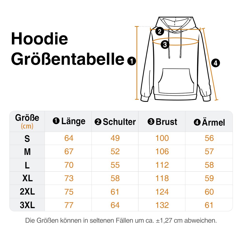 | Größe: | T-Shirt – XS, S, M, L, XL, XXL, 3XL, 4XL Hoodie – S, M, L, XL, XXL, 3XL Sweatshirt – XS, S, M, L, XL, 2XL |
