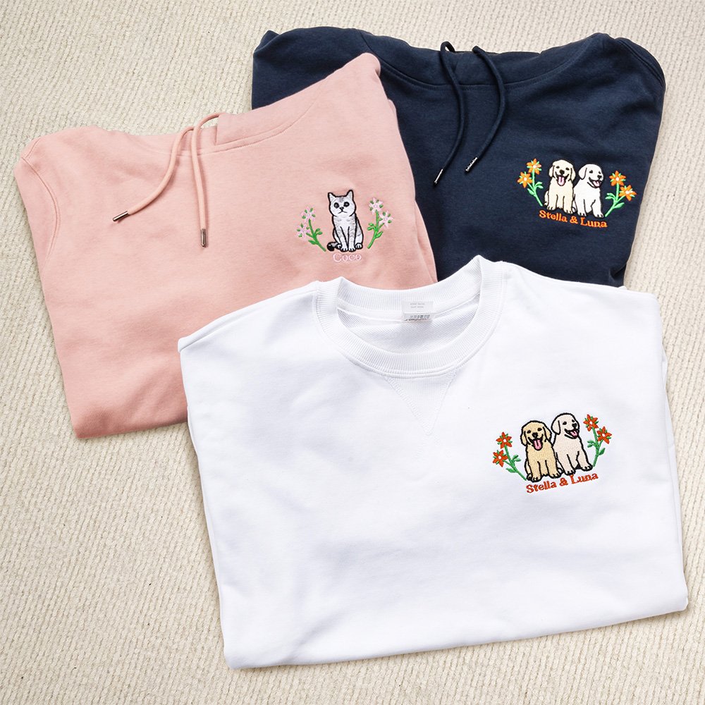 Kurzärmelige T-Shirts sind kühl und atmungsaktiv, Sweatshirts mit Kapuze sind trendy und winddicht, und Sweatshirts sind weich und warm. Alle sind mit exquisiten Tierstickereien versehen, die niedlich und einzigartig sind. Lassen Sie Ihr Haustier Sie durch den warmen Winter und den kühlen Sommer begleiten!