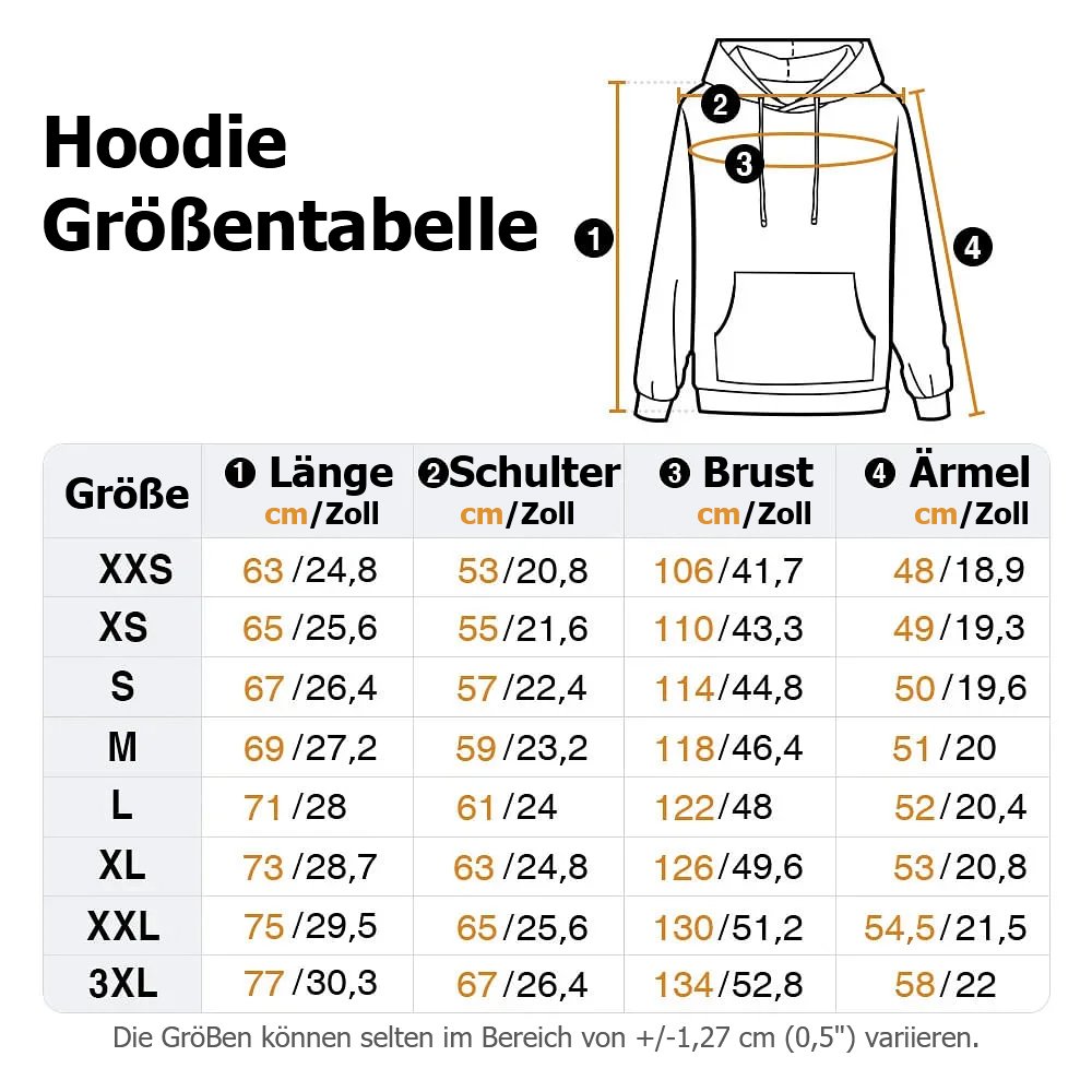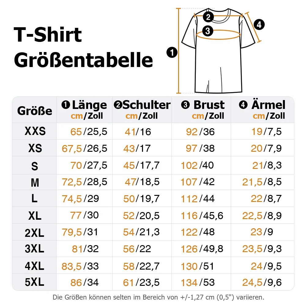 | Größe: | T-Shirt – XXS, XS, S, M, L, XL, 2XL, 3XL, 4XL, 5XL Sweatshirt – Größen: XXS, XS, S, M, L, XL, 2XL, 3XL Hoodie – Größen: XXS, XS, S, M, L, XL, XXL, 3XL |