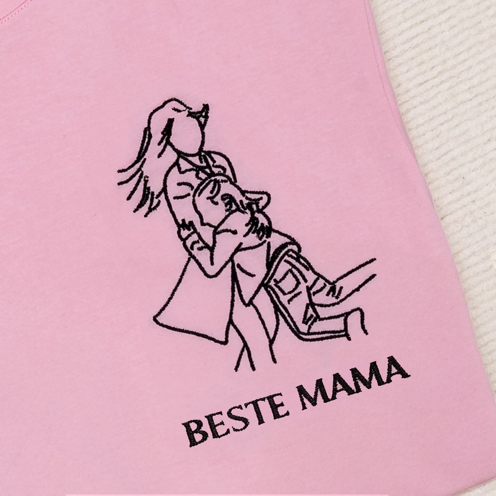 Eltern-Kind-Fotos als zentrales Gestaltungselement, ergänzt durch individuell anpassbare Herzensbotschaften, verleihen diesen Kleidungsstücken eine hochwertige Stickerei, die wertvolle Familienmomente in tragbare Erinnerungen verwandelt. Lassen Sie Ihre Kleidung zu einem Ausdruck familiärer Verbundenheit werden und verbinden Sie dabei persönliche Individualität mit emotionaler Bedeutung.