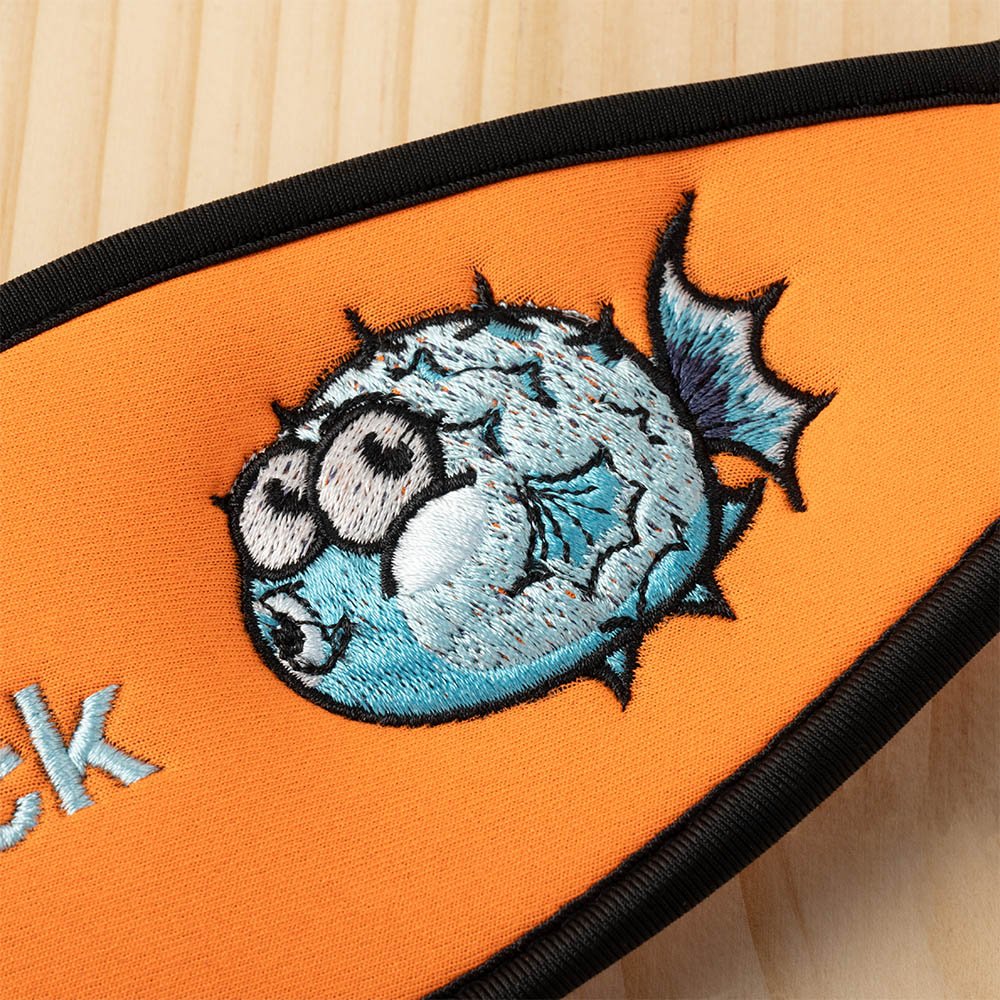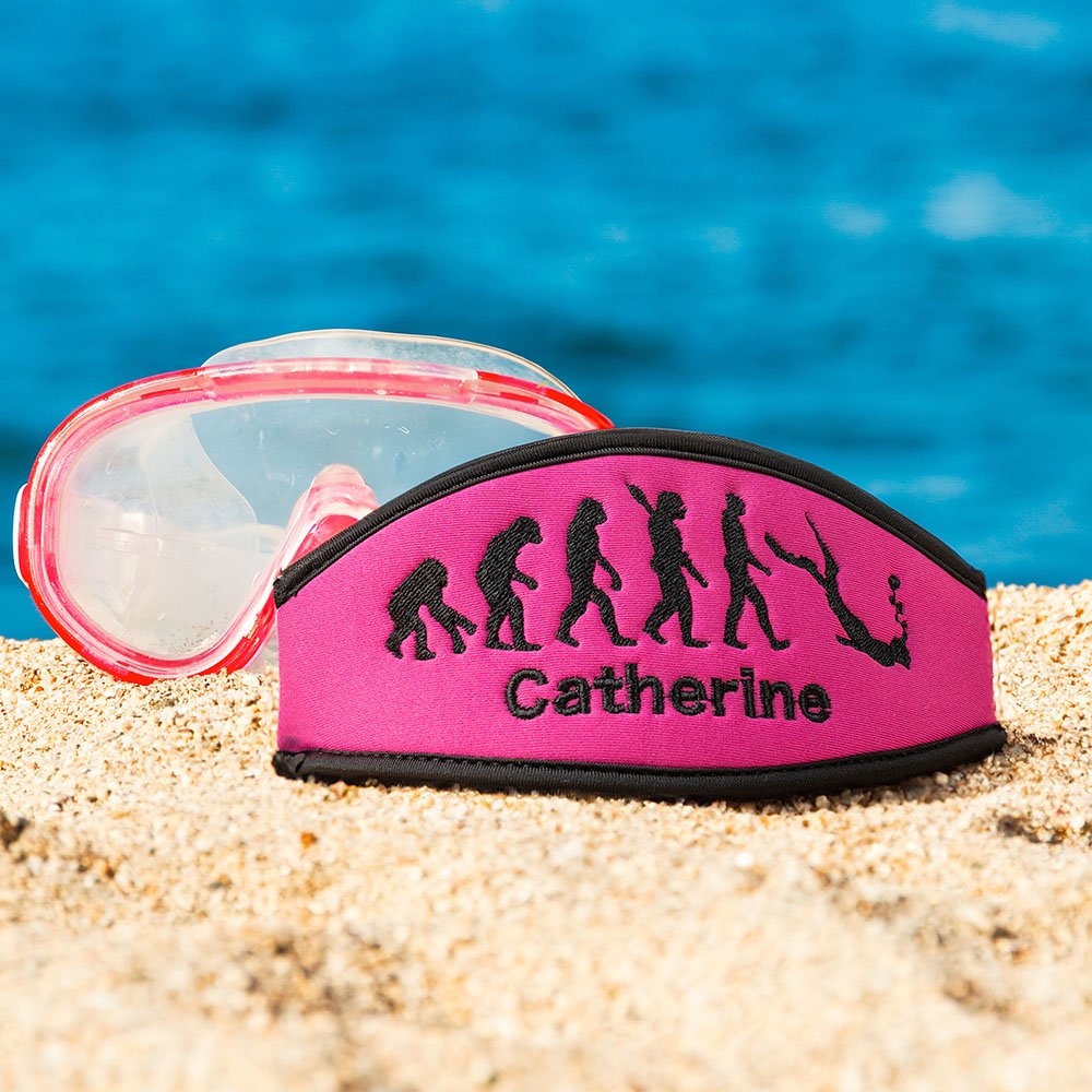 Das Design unseres Maskenbandes enthält Meereselemente wie Haie, Schildkröten, Kugelfische und Tauchermuster, um die Eigenschaften des Tauchens hervorzuheben. Das Muster ist gestickt, so dass es mehr Textur hat. Sie können aus 4 verschiedenen Farben wählen. Das Maskenband kann auch mit einem Namen versehen werden, um es noch unverwechselbarer zu machen.