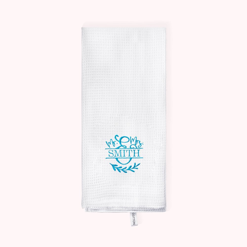 Gesticktes Design mit 7*7cm Namen und EST Jahr auf weichem weißen Waffel gewebt Handtuch ist ein perfektes Hochzeitsgeschenk, Einweihungsgeschenk, Hostess Geschenk und Weihnachtsgeschenk für Jungvermählte.