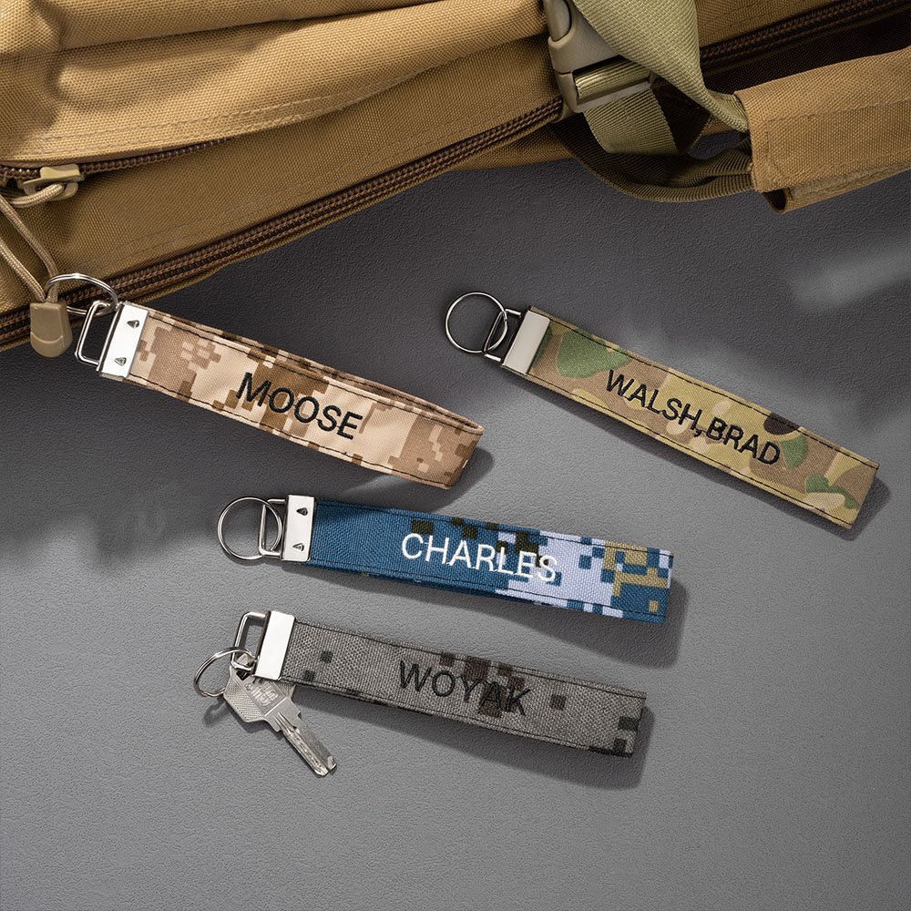 Die Geschichte eines jeden Soldaten ist es wert, geehrt zu werden! Dieser Schlüsselanhänger ist mit einem Tarnmuster und einer feinen Stickerei versehen und hat eine robuste Schnalle, genau wie ein treuer Freund. Dieser Schlüsselanhänger kann mit seinem einzigartigen Farbschema für das Heer, die Marine, die Luftwaffe, das Marinekorps oder die Küstenwache individuell gestaltet werden. Sie können auch Ihren Namen, Ihren Rang, die Nummer Ihrer Einheit und sogar Ihre Telefonnummer hinzufügen, um jedes Geschenk mit exklusiven Erinnerungen und Emotionen zu füllen.