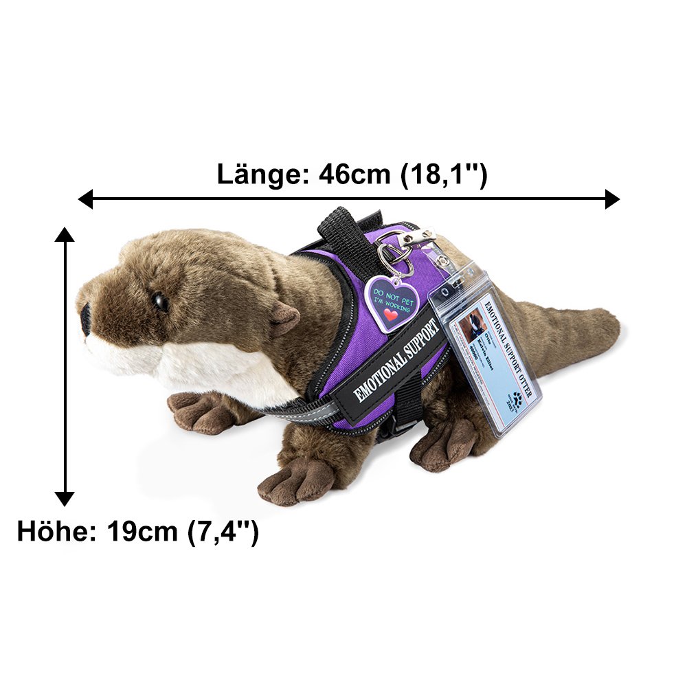 Wenn Sie von negativen Emotionen umgeben, deprimiert, reizbar und traurig sind, brauchen Sie einen niedlichen Plüsch-Otter, der Ihnen hilft, Ihre Stimmung zu lindern und Ihnen Trost und ein Lächeln zu bringen. Jedes Detail gibt das wahre Aussehen eines Otters wieder. Das Fell, die Augen und die Nase des Otters imitieren perfekt das Aussehen des echten Otters, und sogar mit dem ESA-Sicherheitsgurt sieht er aus wie ein echter ausgebildeter Otterführer. Außerdem hat er einen Ausweishalter und eine einmalig nummerierte, personalisierte Registrierungs-ID-Karte am Körper.