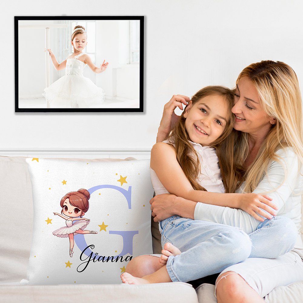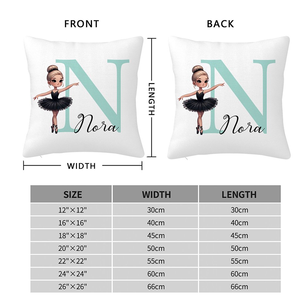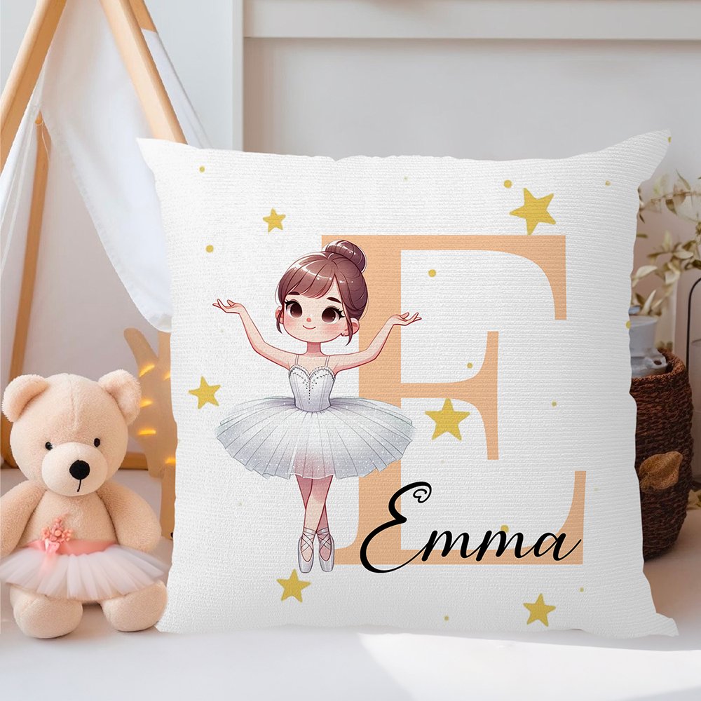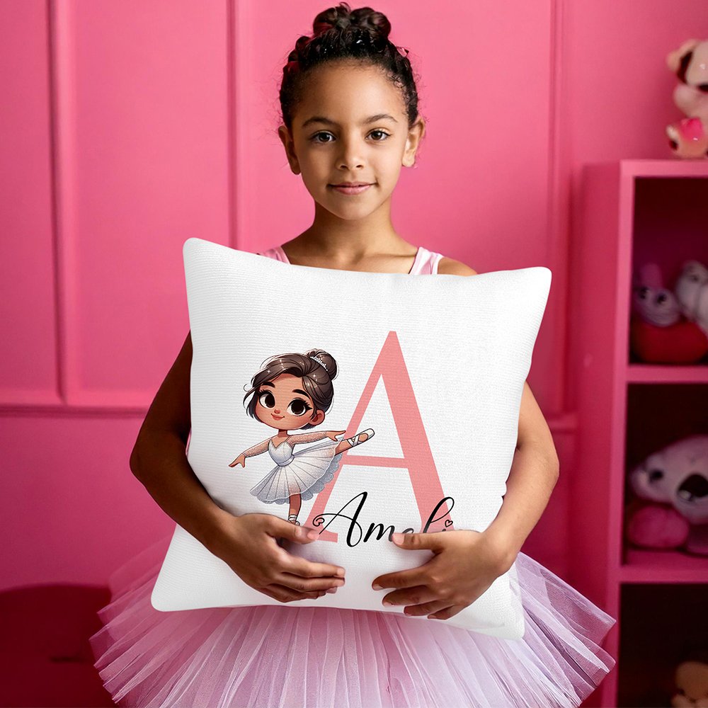 Dieser Kissenbezug zeigt ein bezauberndes Cartoon-Ballettmädchen, das die Eleganz und den Charme des Balletts wunderbar einfängt. Mit anpassbaren Optionen für eine Initiale und einen Namen, fügt es eine persönliche Note, die es wirklich einzigartig macht.