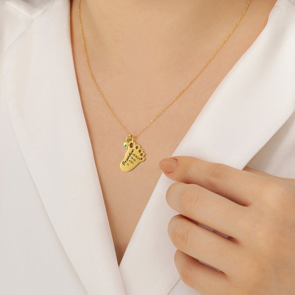 Die wahre Schönheit dieser Halskette liegt in ihrer Personalisierung. Du kannst den Geburtsstein deines Kindes wählen und so ein einzigartiges Stück schaffen, das den besonderen Tag deines Kindes widerspiegelt. Der eingravierte Fußabdruck kann auch mit dem Namen, dem Geburtsdatum, dem Gewicht und der Größe Ihres Kindes versehen werden, was diese Halskette zu einem wirklich einzigartigen Schatz macht.